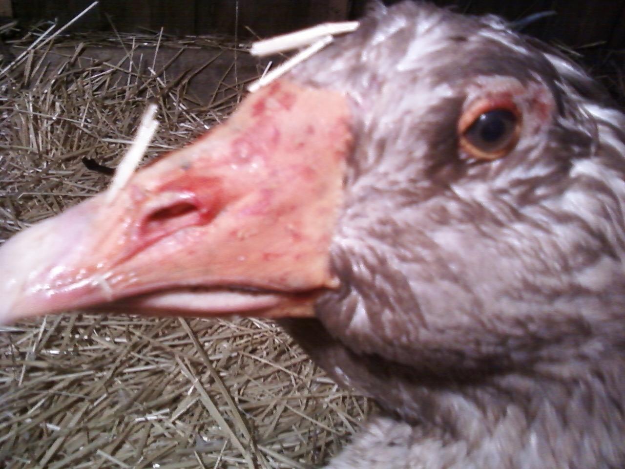I think he was moving his head so much from eye pain maybe, but its odd enough that I'm on hold for Dr. Mendoza, my bird vet (Emporia has one vet whos got an interest and some knowledge here) to see if he'll take a look at the goose today.