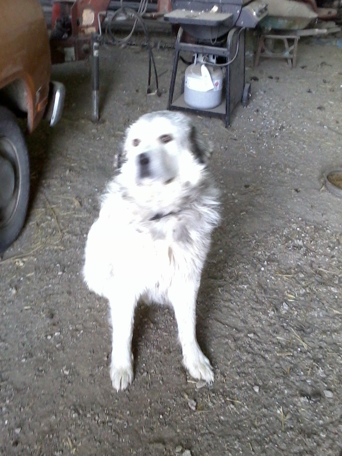The 3 year old female has taken to sleeping on the hill in front during the day (with the Alfa Dewlaps and Ancona flock)