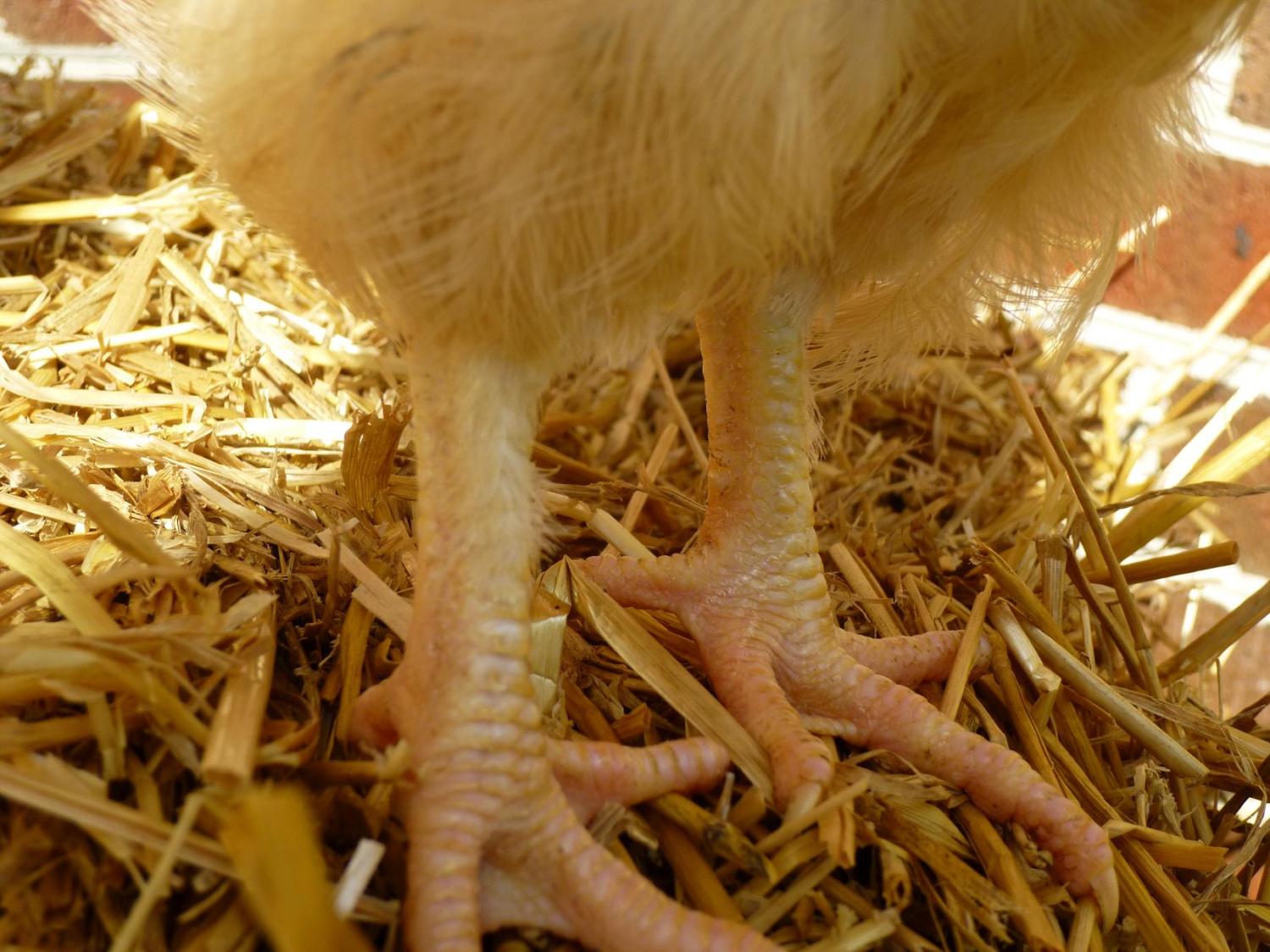 Hey, I have 6 straight run buffs from Cackle Hatchery and one (I think it's a male) has fuzz about halfway down his shanks on the outside. Is he really a buff or is this just some funky genetics popping out? He's 6 weeks old. The fuzz hasn't been replaced by feathers yet.