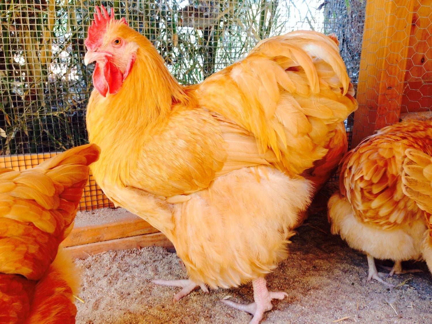 in this photo it's very contrasted because of the option I happened to have my camera phone set to so it is super orange and looks like he has a white sickle feather but he actually does not have a white feather. It is just something that showed up in the photo with the way the light was first filtering threw the background.My advice? Love 'em. Enjoy 'em. And don't add any chicken flea market or swap finds so they stay healthy and safe. In a nutshell, or maybe an eggshell, LOL.