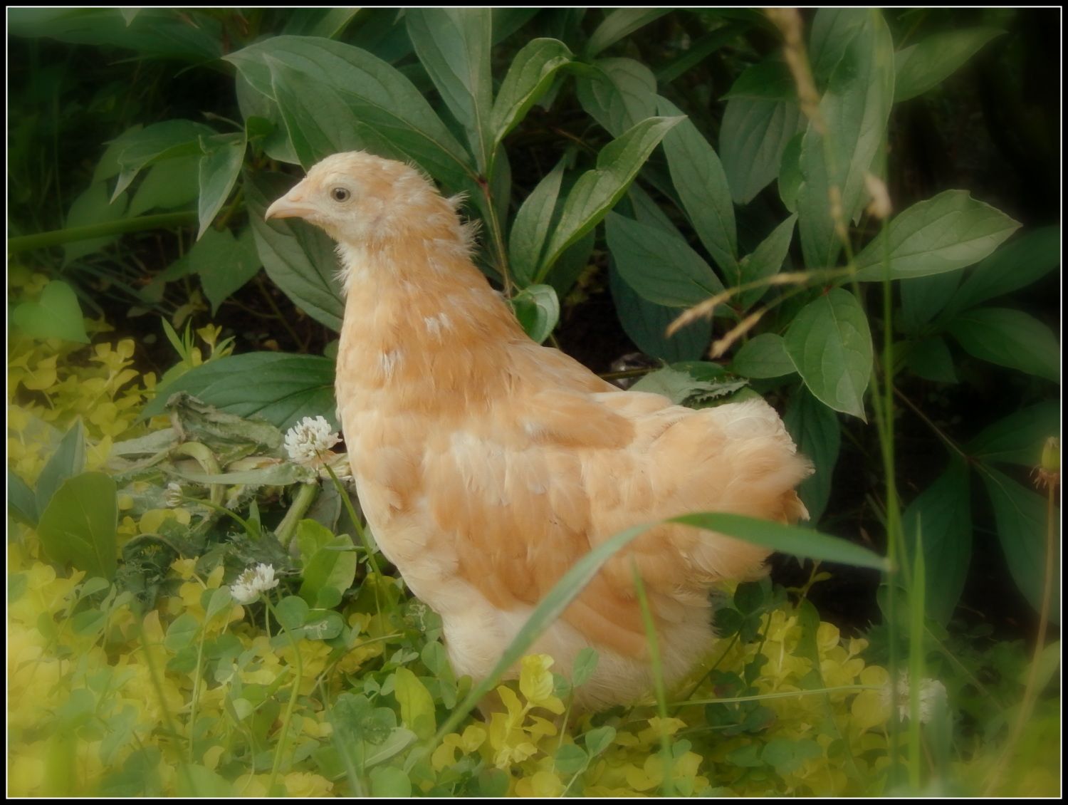My first Buff Orpington chick, Goldie (marigold) is by far the sweetest of my mixed flock of 7 different breed chicks. She was chosen as an afterthought to round out plumage colors in the flock. To my surprise, she quickly soared to favorite snuggle bunny in no time flat. She is eight weeks old and here is her growth so far...