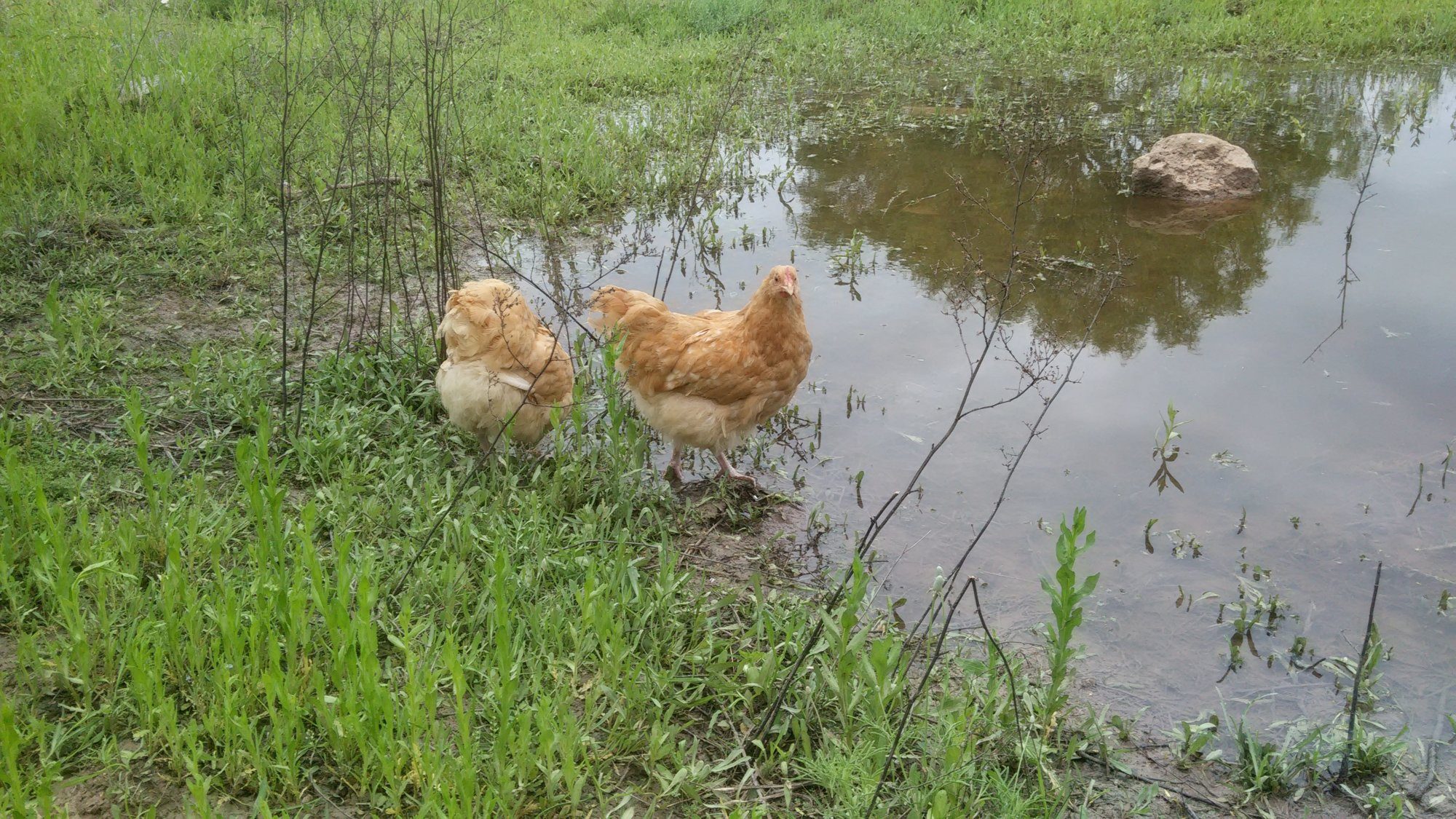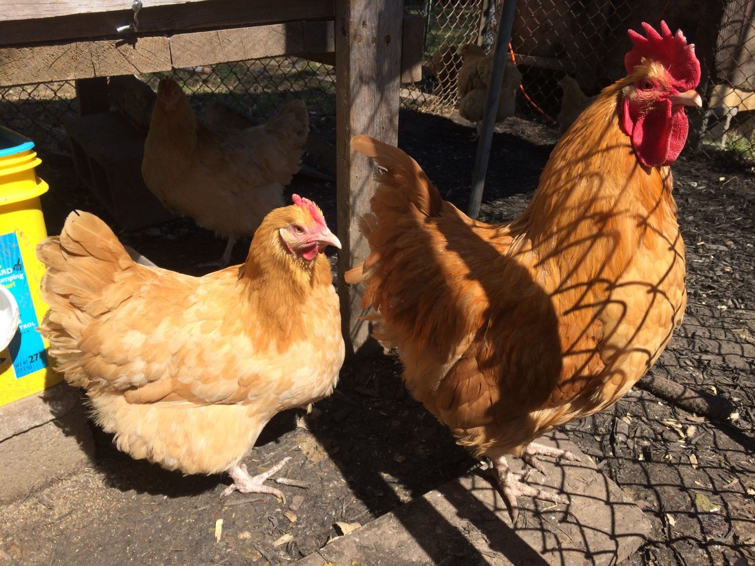 My roo is now with my 4 orp hens. They haven't laid any eggs in the month i've had them,but seen my boy mate with 2,and attempt a 3rd all within about half hour! 3 of them are squatting when I touch them..oh,fertile eggs are comimg soon! Can't wait! Pic of my gorgeous boy and one of his ladies!
