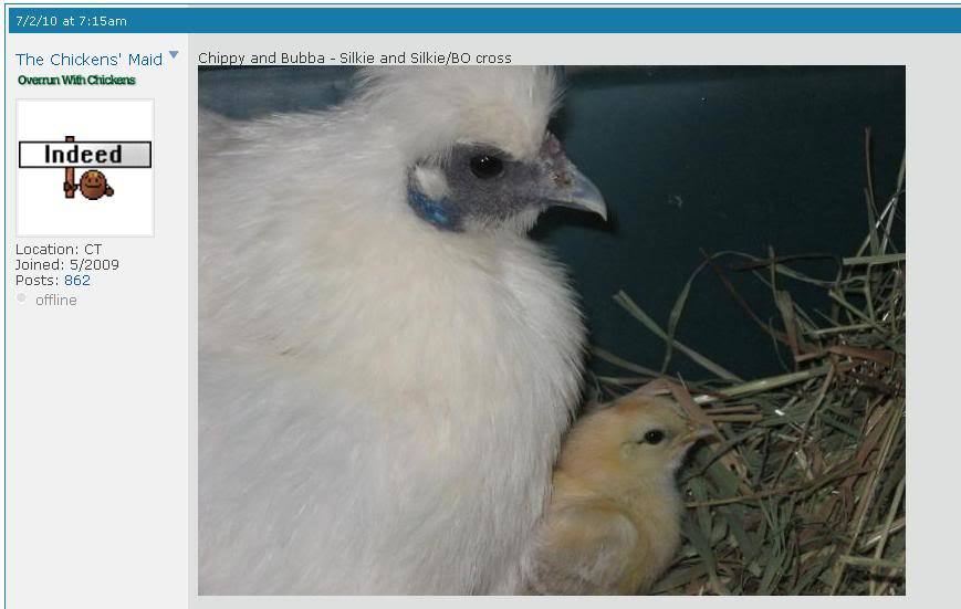 Bubba days old with white silkie mother