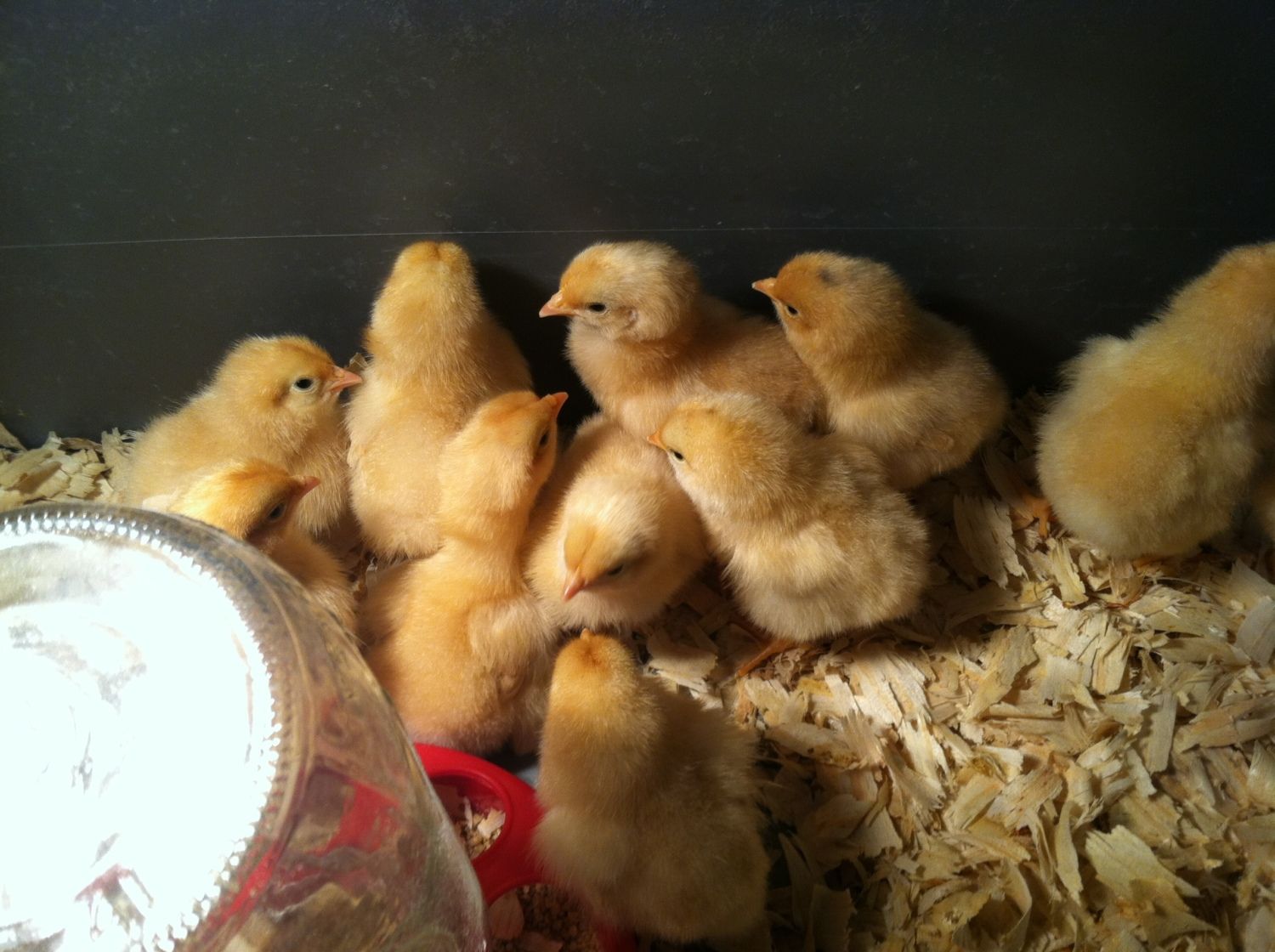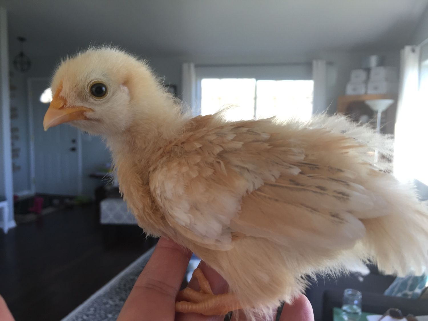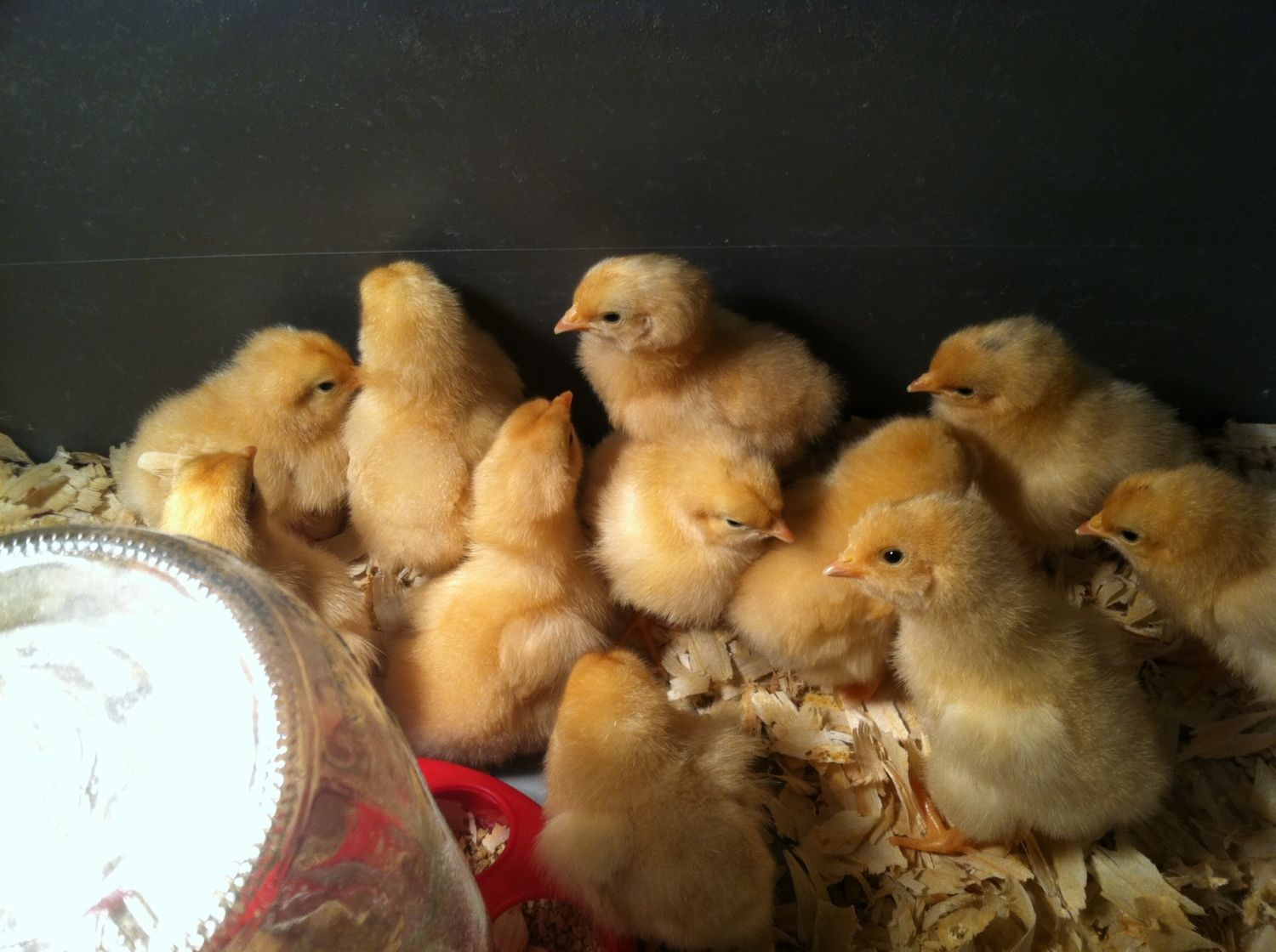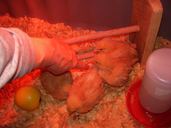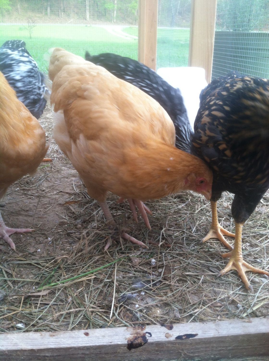 Coop looks good!We're newbies here and newbies at backyard chicken keeping. We got our coop and run up last weekend but are still 'tricking it out' and predator-proofing it, etc. This morning our 4, 4 week old buff orpington chicks came in the mail. They were active and so much fun in just a couple hours. I have held them and sung to them so I can train them. We are so excited! Kind of scared too, because it's a big responsibility---you love the little guys and want to keep them safe and healthy. I worry about things that can go wrong and wish I knew more. Trying to learn all we can, but sometimes it seems a little overwhelming. The chicks are happily doing what chicks do in the brooder we made from a Rubbermaid tote and set on a table. Here in NH, I won't be putting them in the coop for several weeks yet. Here are some pictures we took when the arrived this AM!![]()
