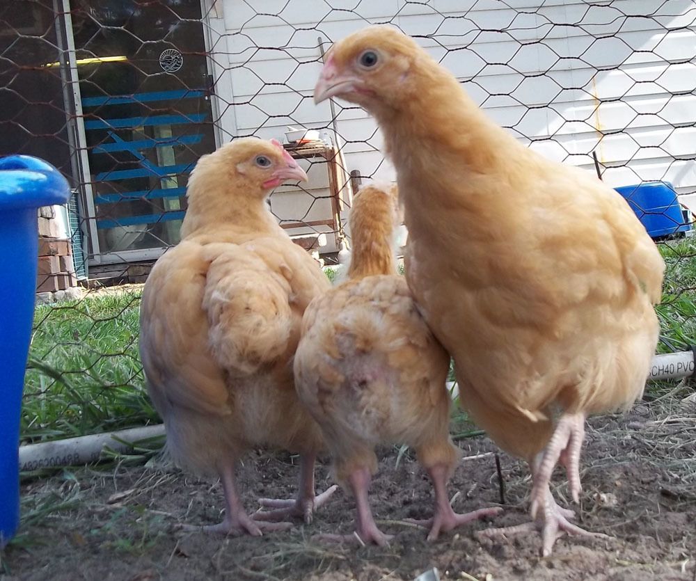 Just got two Buff Orp pullets (we hope) that are two months old. They are doing great! Georgina is definitely the boss, and Henrietta is more tame. Very nice so far.