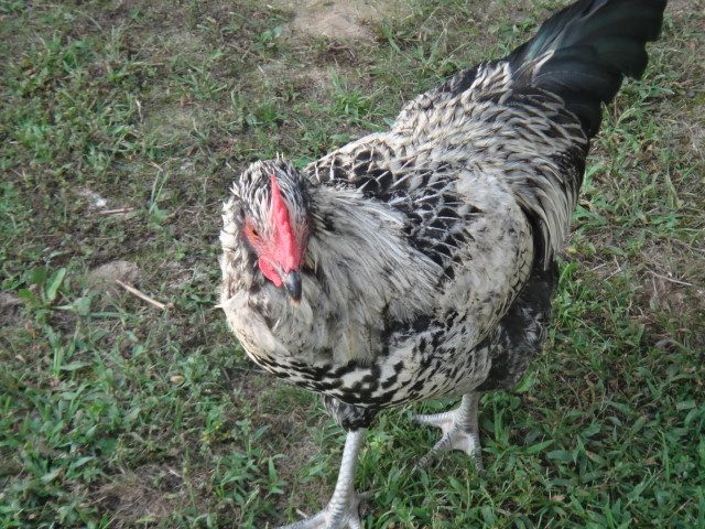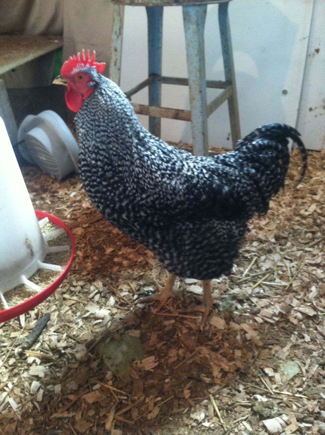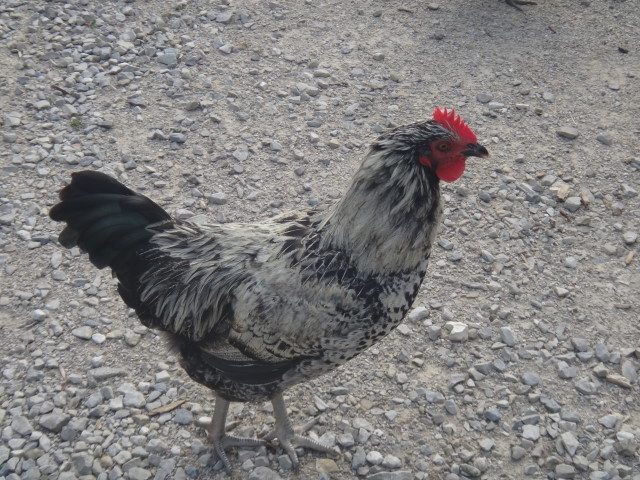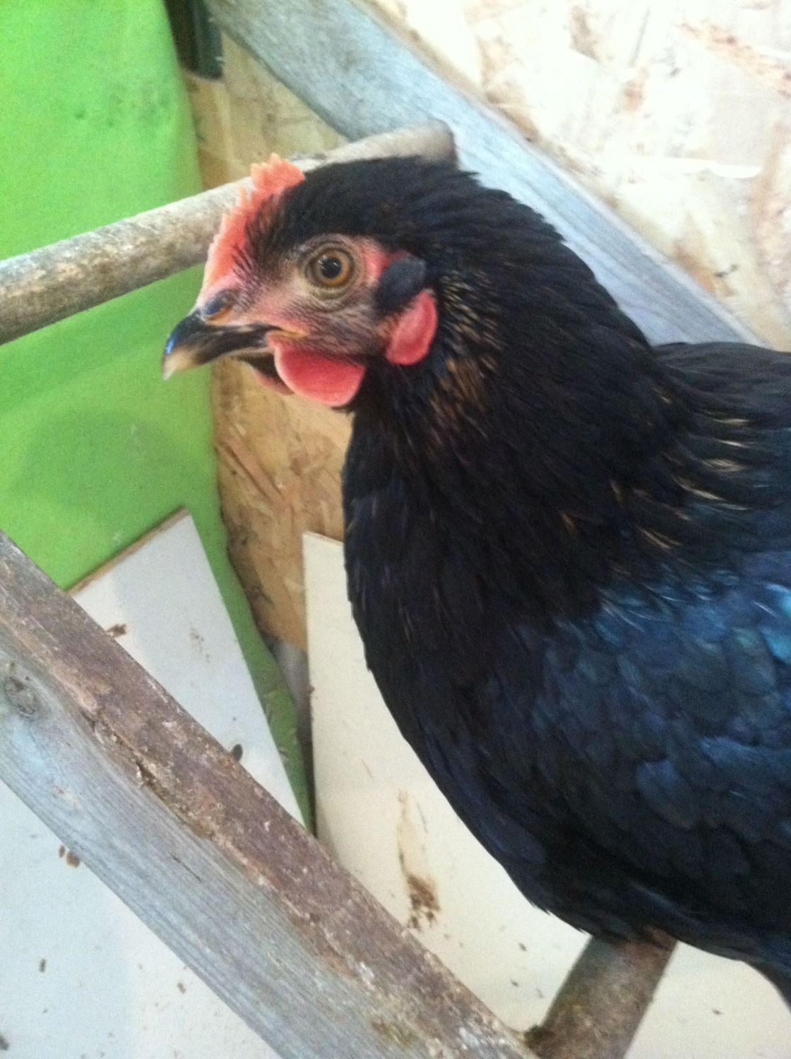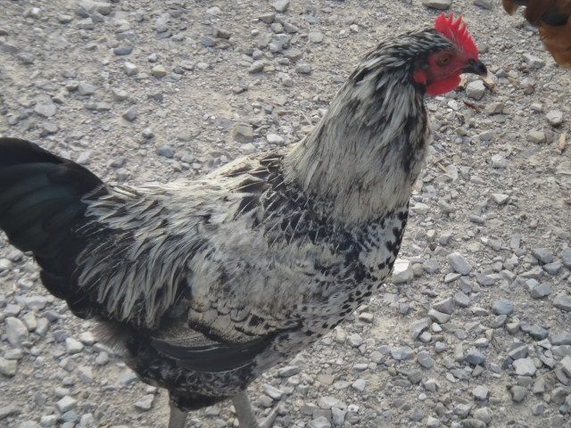 What other hens do you have? I really don't think this bird came from a barred Rock hen, he has no barring.Ok, so I have some older chicks now from a BO roo and BR and then I have some from the same BO roo and 2 different Easter Eggers. This here is Sammy. I thought he was a she for a long time until he started crowing. He was born with a gold face and no spot on his head. He is going to be a beautiful rooster if I decide to keep him. His BO dad is aggressive. He has a green sheen on his black tail feathers that you can't really see in the pic.