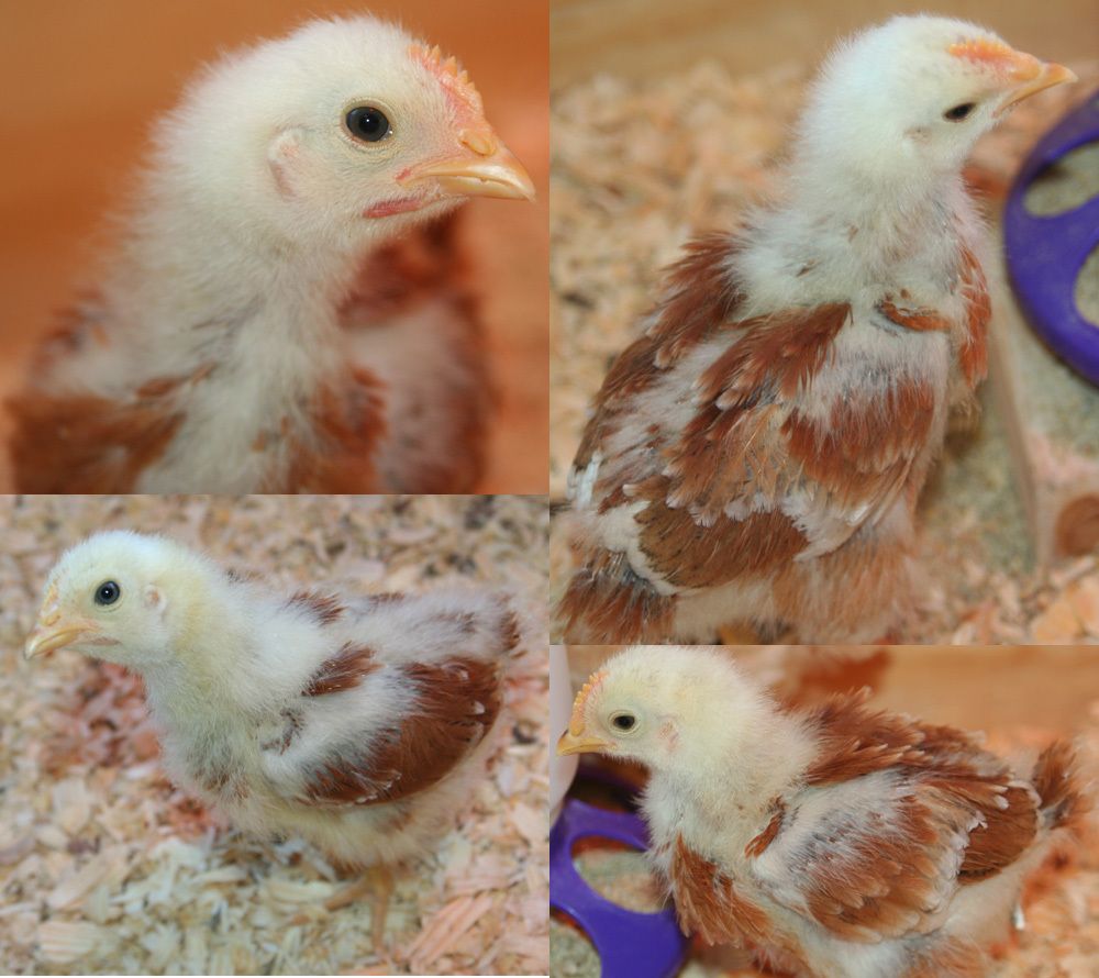 I am completely stumped right now though and could use some help. These are SUPPOSED to be almost 3 week old Buff Orpington pullets. However, something is definitely different here. Given that I'm a first time chicken mama and don't have the slightest clue what I'm doing, I'm hoping some more experience chicken people can help me out. Are these simply different breeds and/or do I seem to have a few males thrown into the mix here? The first pic is what 4 of the chicks look like. They all have the same coloring with varying degrees of feathering coming in and all seem to behave the same. Pretty docile & friendly, some are a little more skittish than others but all are pretty friendly. The second pic is the other two chicks who have clearly different colored feathers, they are a bit bigger than the others, seem to be a little more aggressive with the other chicks (lots of chest bumping going on with these two), they are curious about everything and stand with their heads cocked to one side like they're listening for every little sound. They are also hands down, the friendliest chicks with people. All the chicks rush over when we put our hand down in the brooder, jump on and want to come out and be held. The lighter colored ones usually want to return to the brooder fairly quickly though but these two will sit and hang out with me on my lap, chest arm or shoulder for long periods of time making no attempts to leave my side. Thoughts?