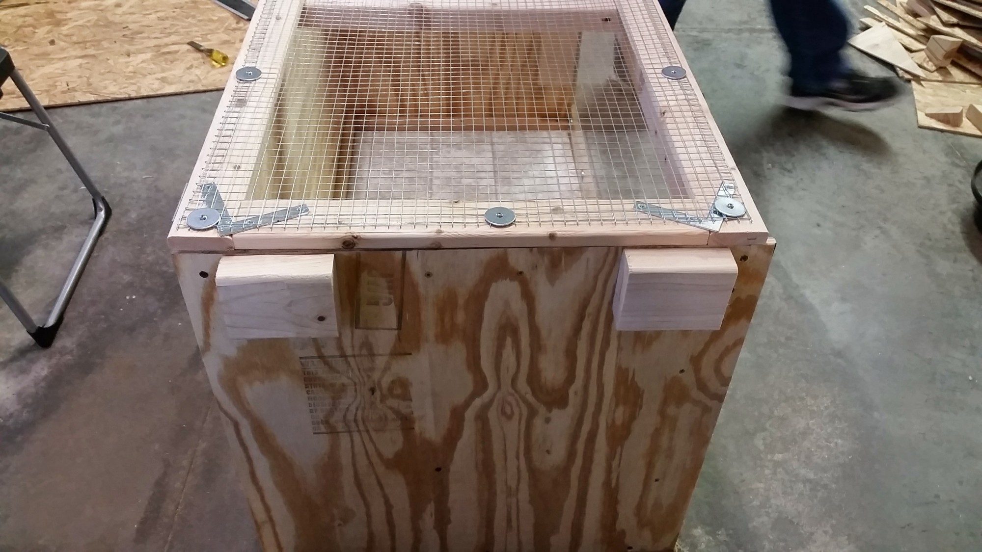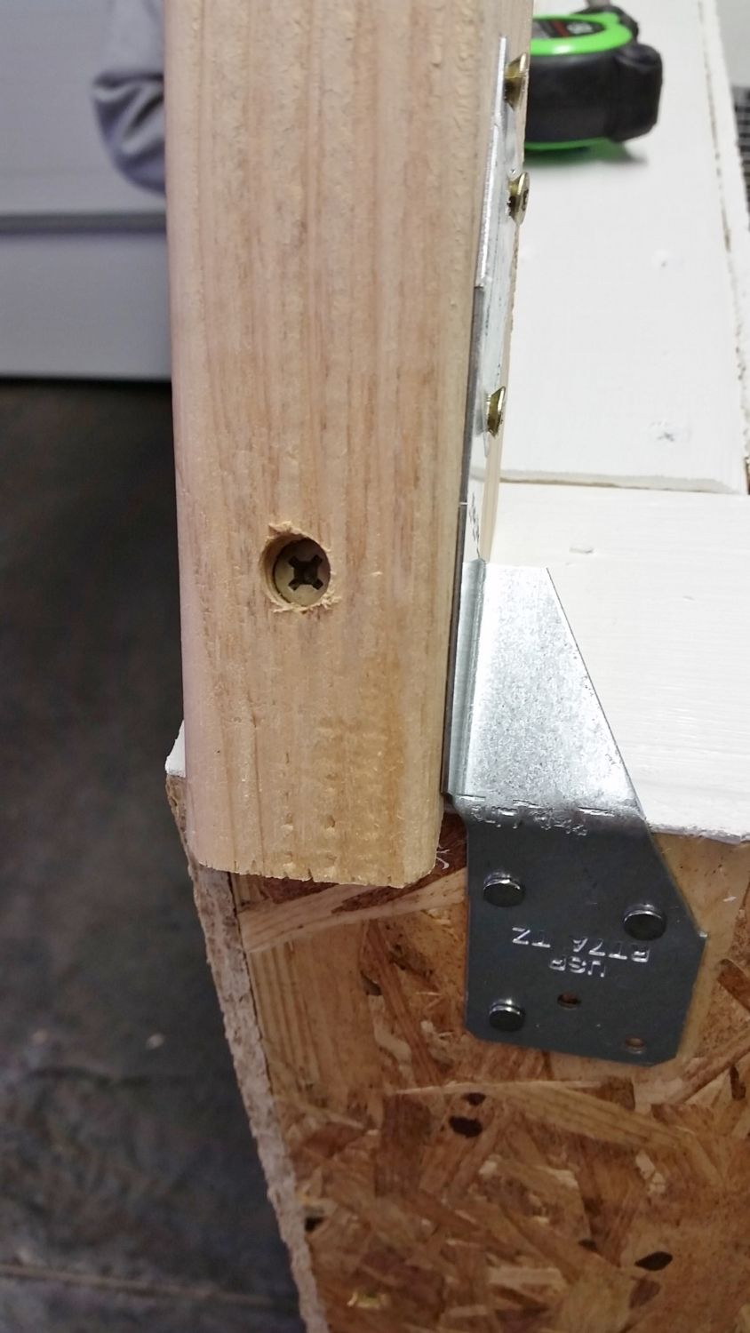 But we found these brackets at Lowes and bent them slightly for the 4 corners. Then he used a 3.5" screw to give it more support.