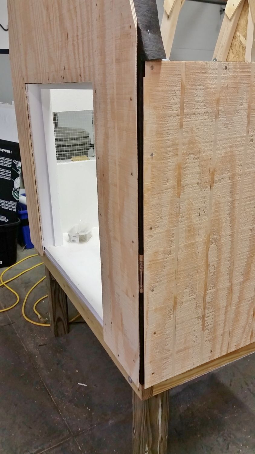 I had no idea that insulating this and sheeting the inside would take up so much space. I'm not a builder, and even though my husband is all about precision measurements he didn't think it would be this much either. Our idea was to have a 4x4 coop, about 16 square feet for 4 hens. But the inside measurements are now 3ft 4 3/8" by the same. Which makes the coop only 11.3 square feet, which is 2.8sf per chicken. Plus the nesting boxes.
