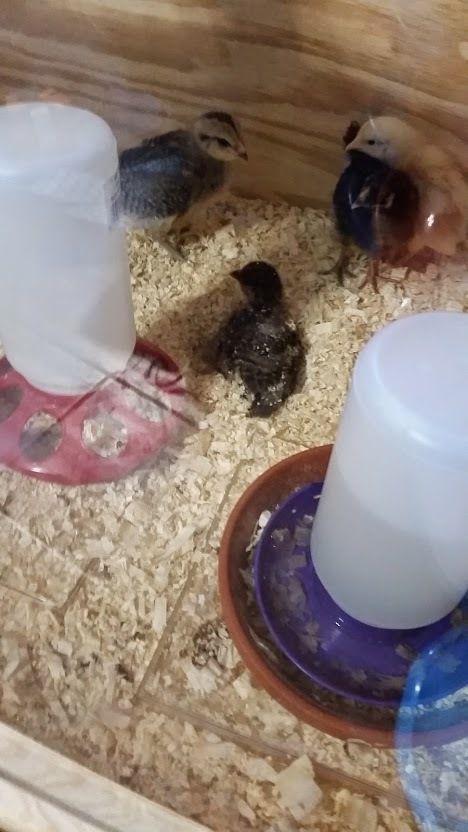 They're getting so big! I've been giving them boiled or scrambled eggs for the past 3 days as a treat. My buff orpington is the least shyest so far. She was the first to eat out of my hand. On the second day the wyandotte joined in, and today one of the americaunas did. So maybe tomorrow I can get all 4 of them to do it. It's sooo funny to watch them chase each other when one has food in her beak.