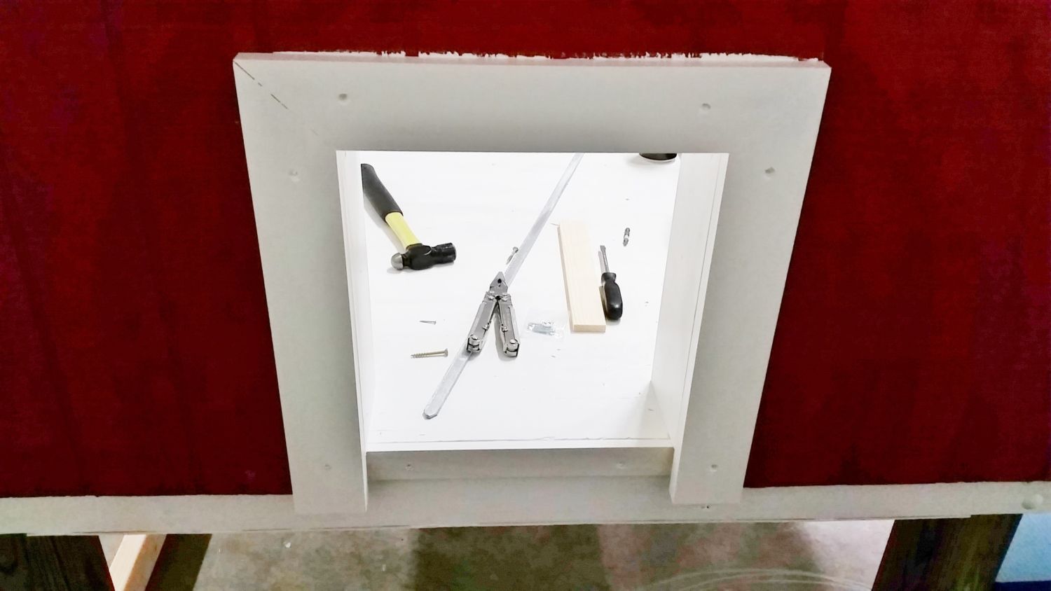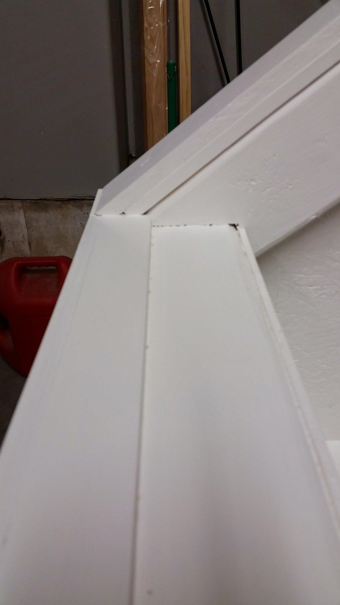 The red board is cut to fit the opening and I wanted the trim to go around it to keep out rain during storms.