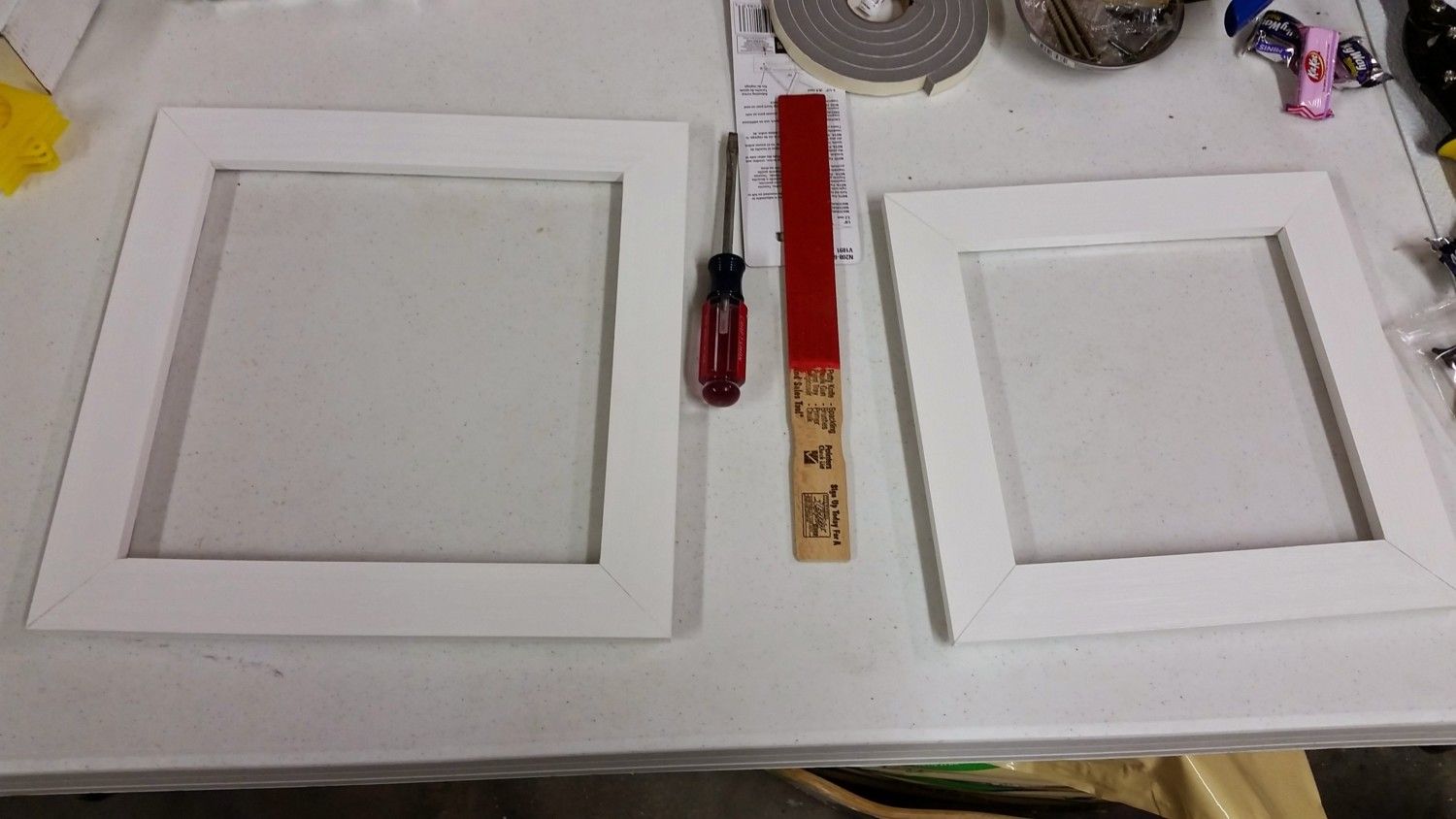 The smaller window wouldn't stay closed all the way so after I took this pic I had sanded some parts down and now it closes well. I spray painted some hooks black and will out those on to keep the windows latched.