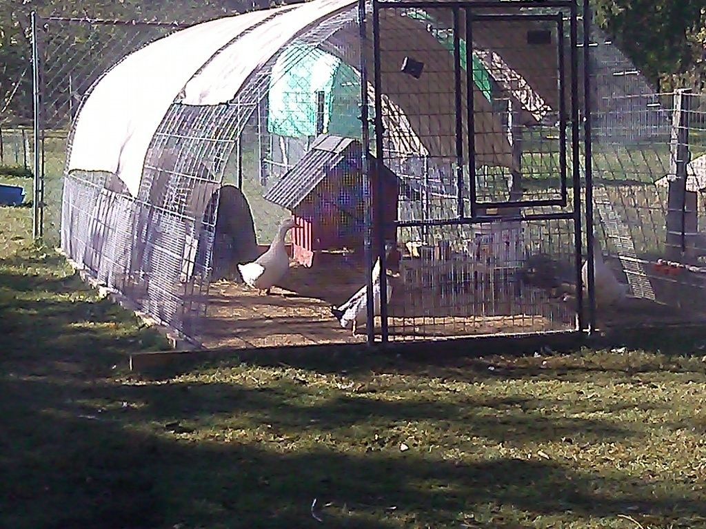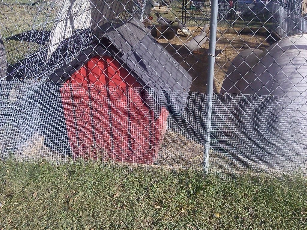 Very nice!The Duck Coop, Its about 12-16 feet long. 8-10 feet wide. Wired with hardware cloth at the bottom 2 feet to keep Fox's out. With a DuckLoo in and their duck house.