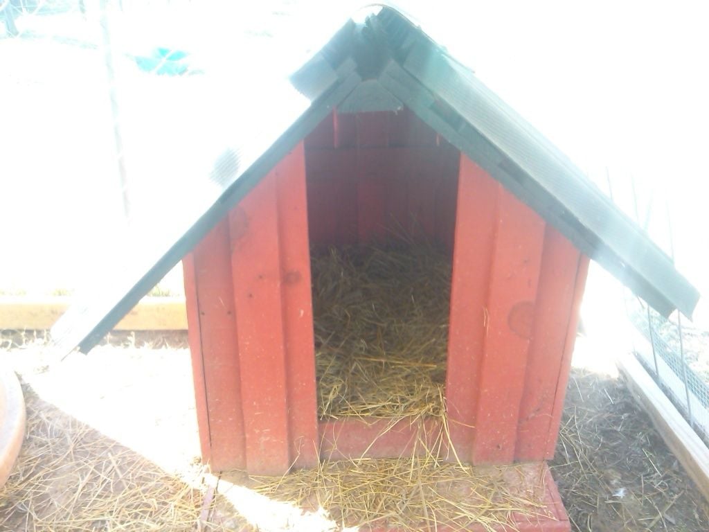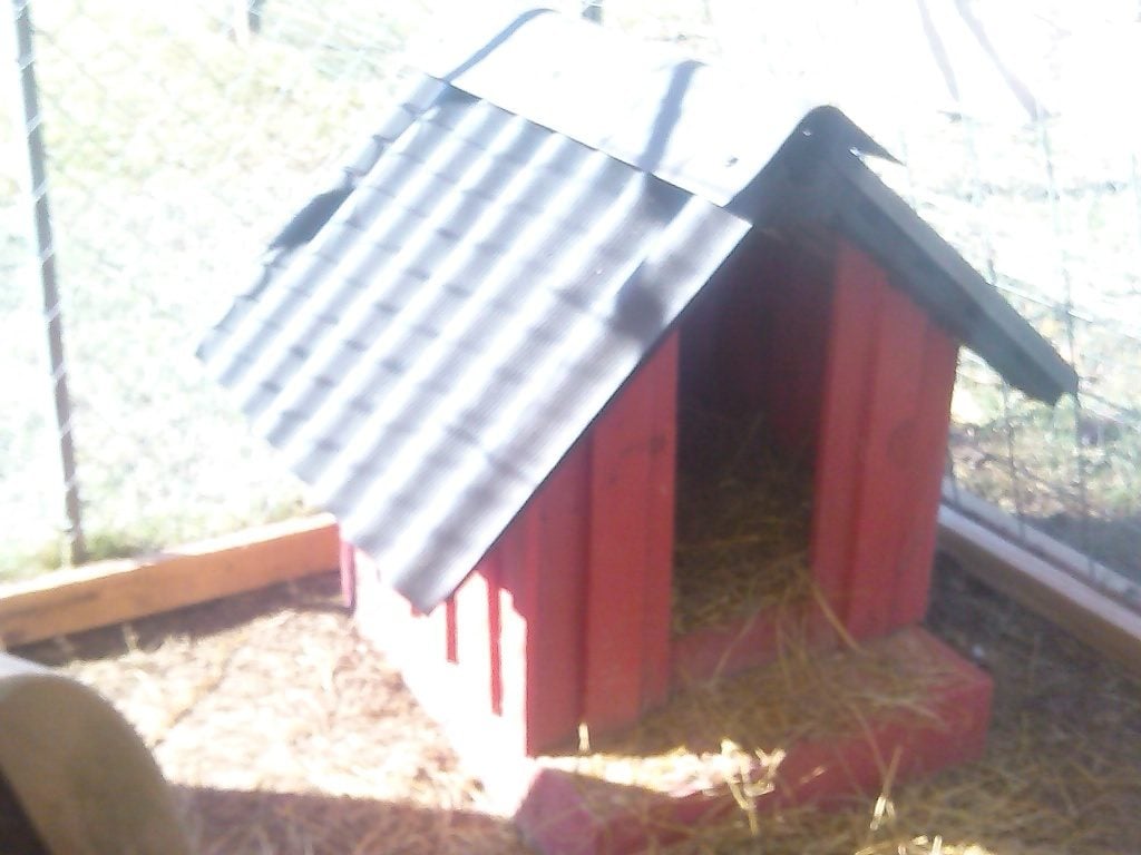 Their Duck House, is made out of Free Pallets, We used extra pallets to fill in the missing area's. It keeps rain out, keeps the ducks Dry and warm during a storm. Is small enough that they love to lay eggs in it, but big enough that 3 full grown ducks. Including one pekin likes to pile in during a storm.