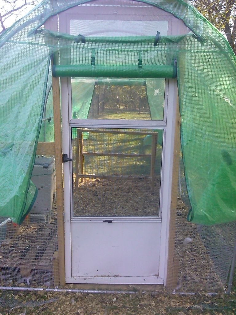 I bought 2 >.< As stated, the bottom half of the greenhouse has hardware cloth with a one foot apron. The door was purchased at Habitat Restore for $20 (If I remember right) so the entire thing was less than $100. We have the greenhouse plastic rolled up for ventilation while its nice and warm, will drop it to the ground once it gets colder to keep out drafts. It still has vents built into the top, for ventilation.