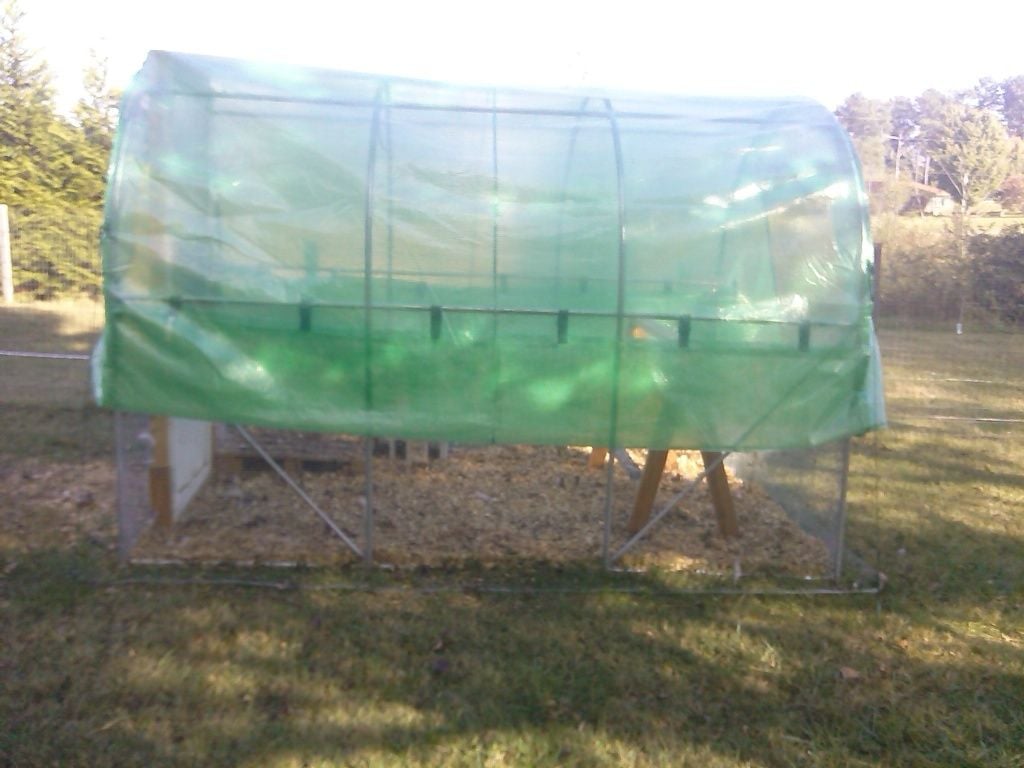 Ya'll have done a great job, and to take the green house and make it a safe house for your turkeys is really interesting. Just goes to show ya with some imagination you can use so many different things for housing. How does the tarp and plastic hold up to the weather do you have to change out 1x a year? We found some windows at Habitat resale also that is a good place to look for things. Love your chicken coop too.Thanks to Wild and the camera here are the requested picsThe greenhouse was on clearance one day when we buzzed through TSC http://www.tractorsupply.com/en/sto...n-greenhouse-78-3-4-in-l-x-118-in-h-x-84-in-w
