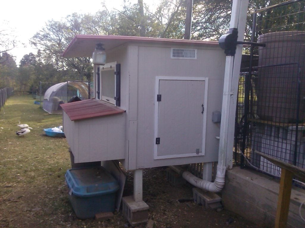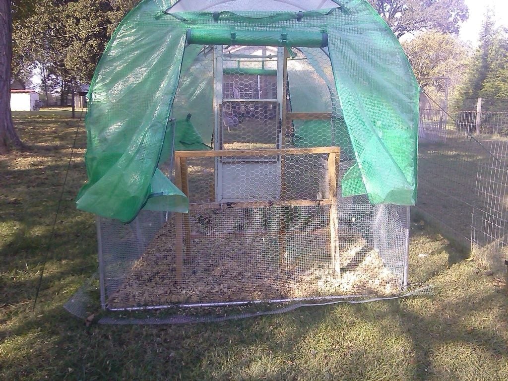 You could always put a tarp over the top of the hoop coop to keep water out. I plan to wrap this coop up with contractor plastic for the winter to keep the snow off