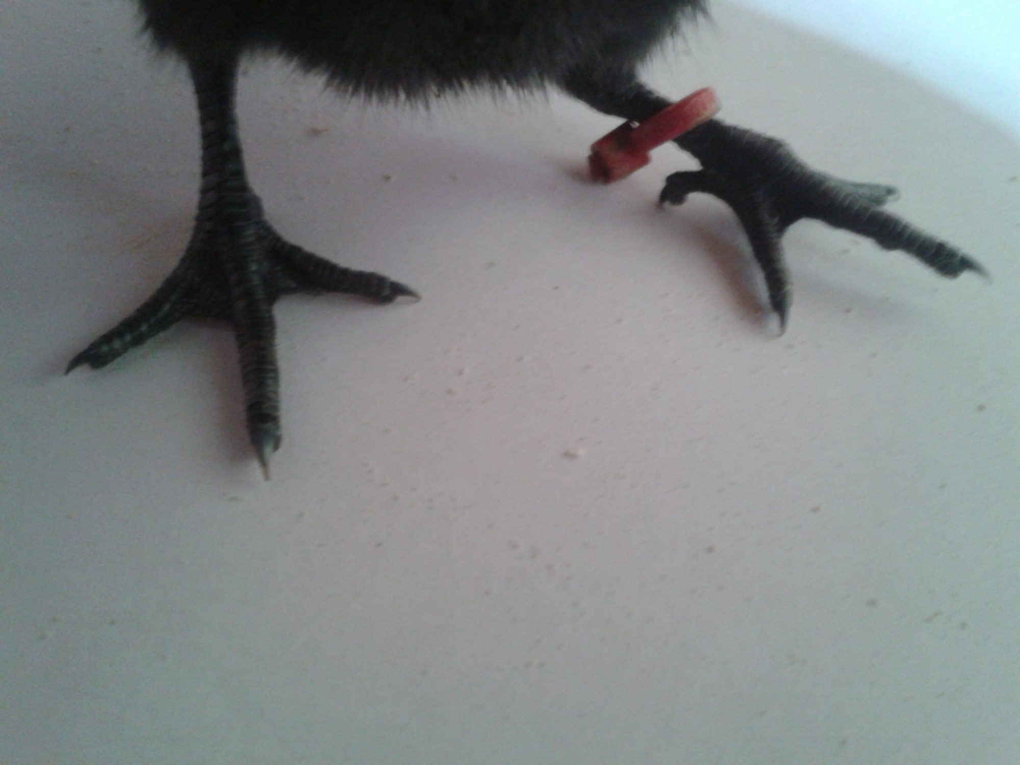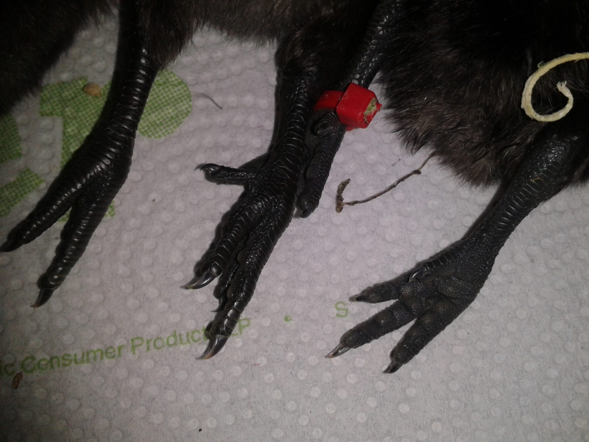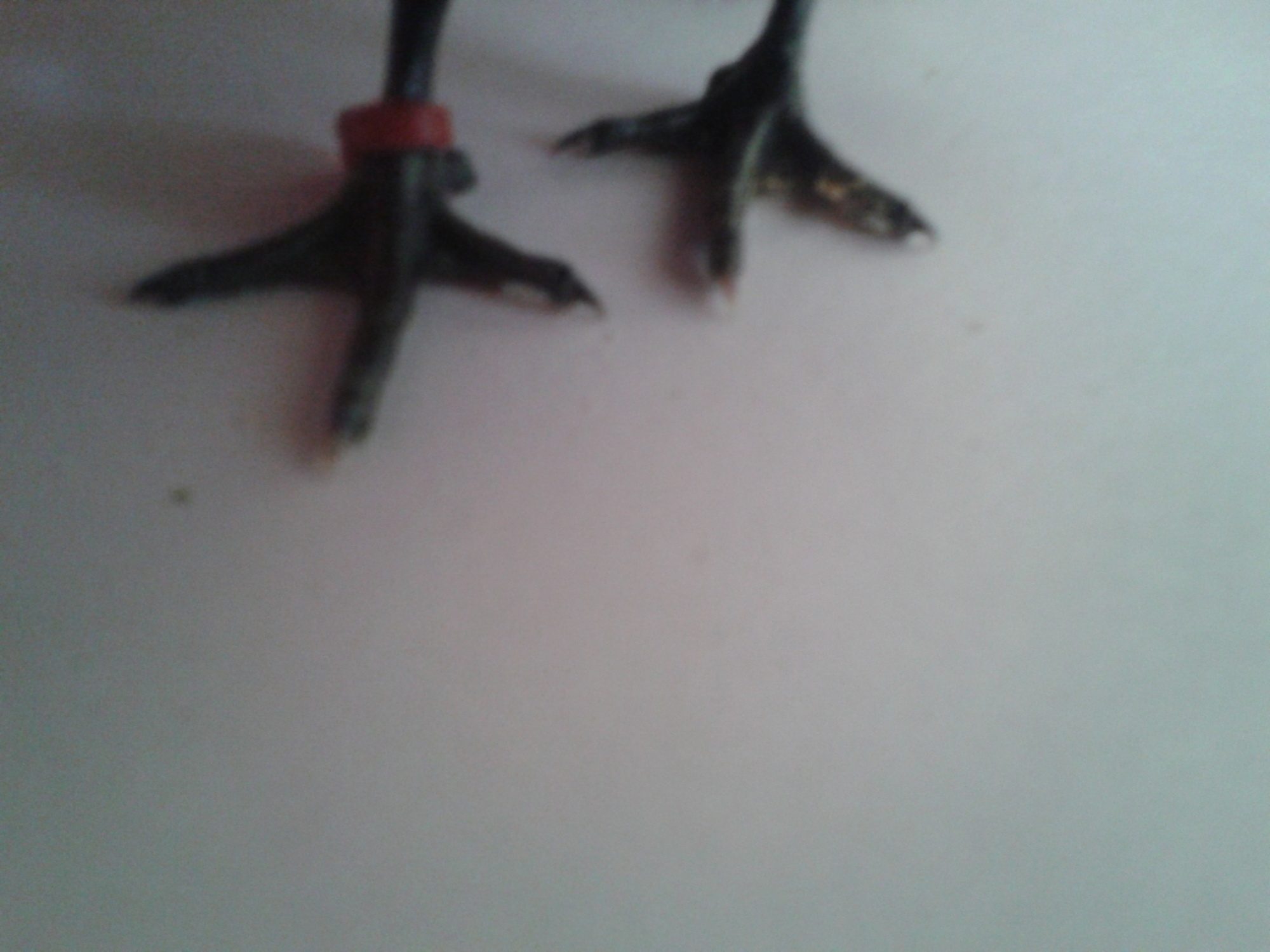 these birds both sets...red bands being cemani are all black...even the svarts are all black...in the feet