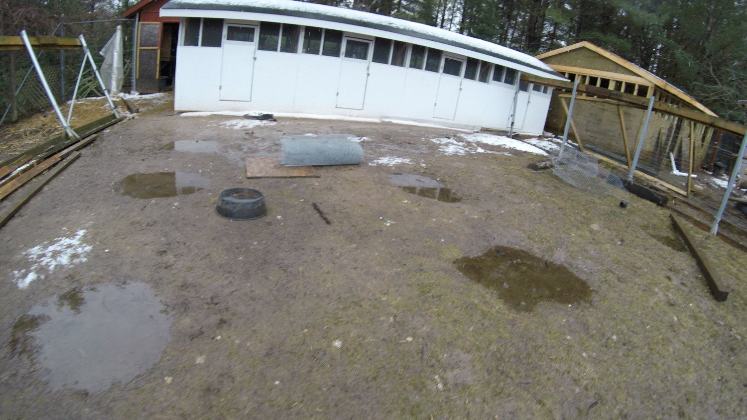 add onto the last post.....the ground is horrible in just about every pen.....hope no birds get sick.....the rooster at the end here is the story on him....so I got him pretty young he is a American gamefowl blood line "butcher".....he is over six pounds and very fast......last week he stuck me in the leg for the first time ever.....I tried to grab him like I normally do and when I tried to pick him up he turned on me and started to wack me.....it was a new experience for me that's for sure.....so instead of me being attacked when I feed/water or pick eggs I figured I would buy a fake rooster so it can be preoccupied while I do my chores.....soon enough he will be moved into a new pen that can be fed and watered from the outside.....he was always nice so not so sure why he is still mad at me but he is not changing back even if I try to give him some bread he still looks and acts aggressive.....and no he is not going to freezer camp....I paid to much for him.....I do have birds that have hatched already from them so just waiting till probably next season then he will be put down....maybe....anyways have a wonderful night....its about 2 am and cant sleep...been doing to much research and planning and everything tomorrow will be a huge work day.....my day starts in four hours....peace
