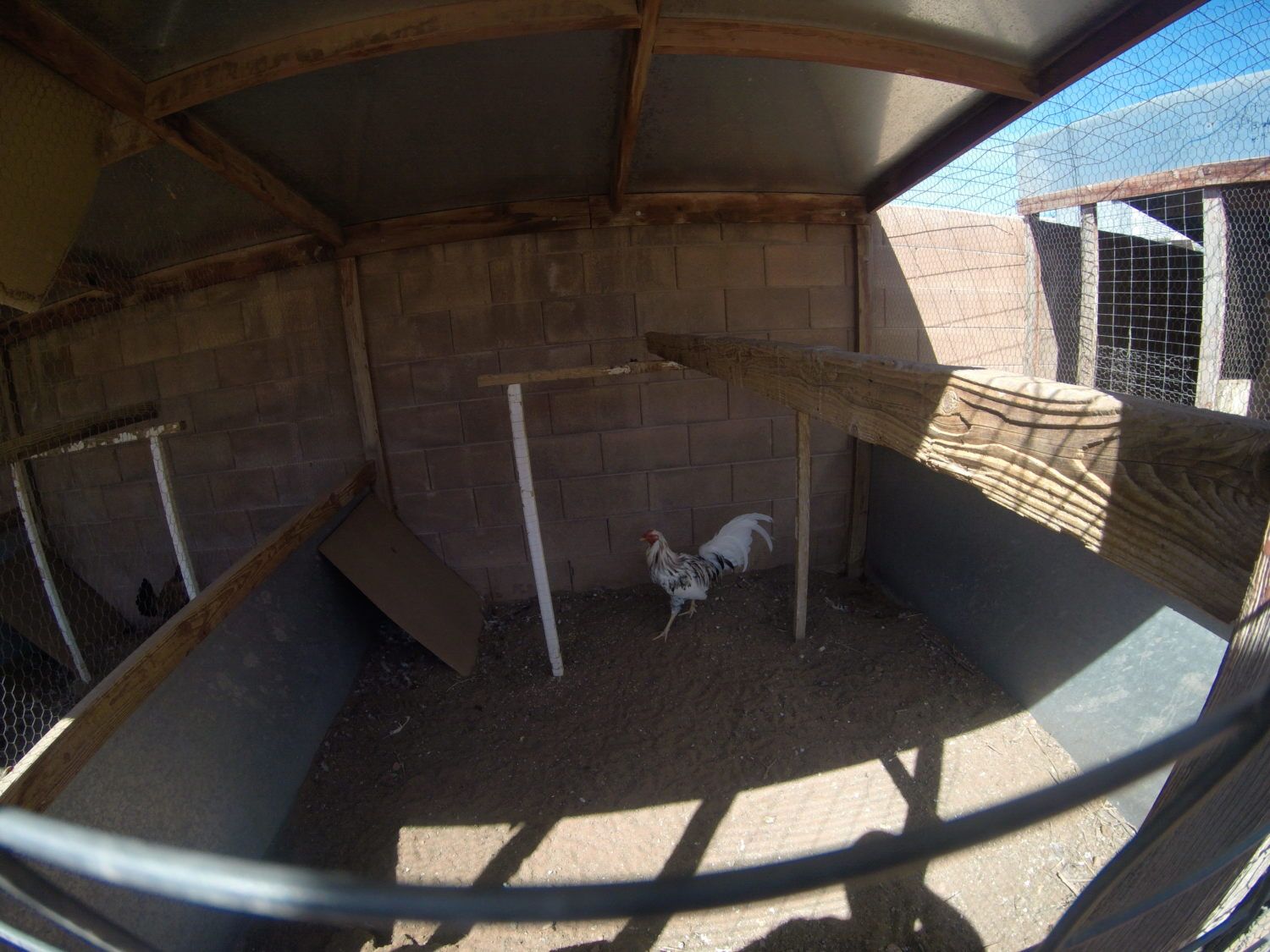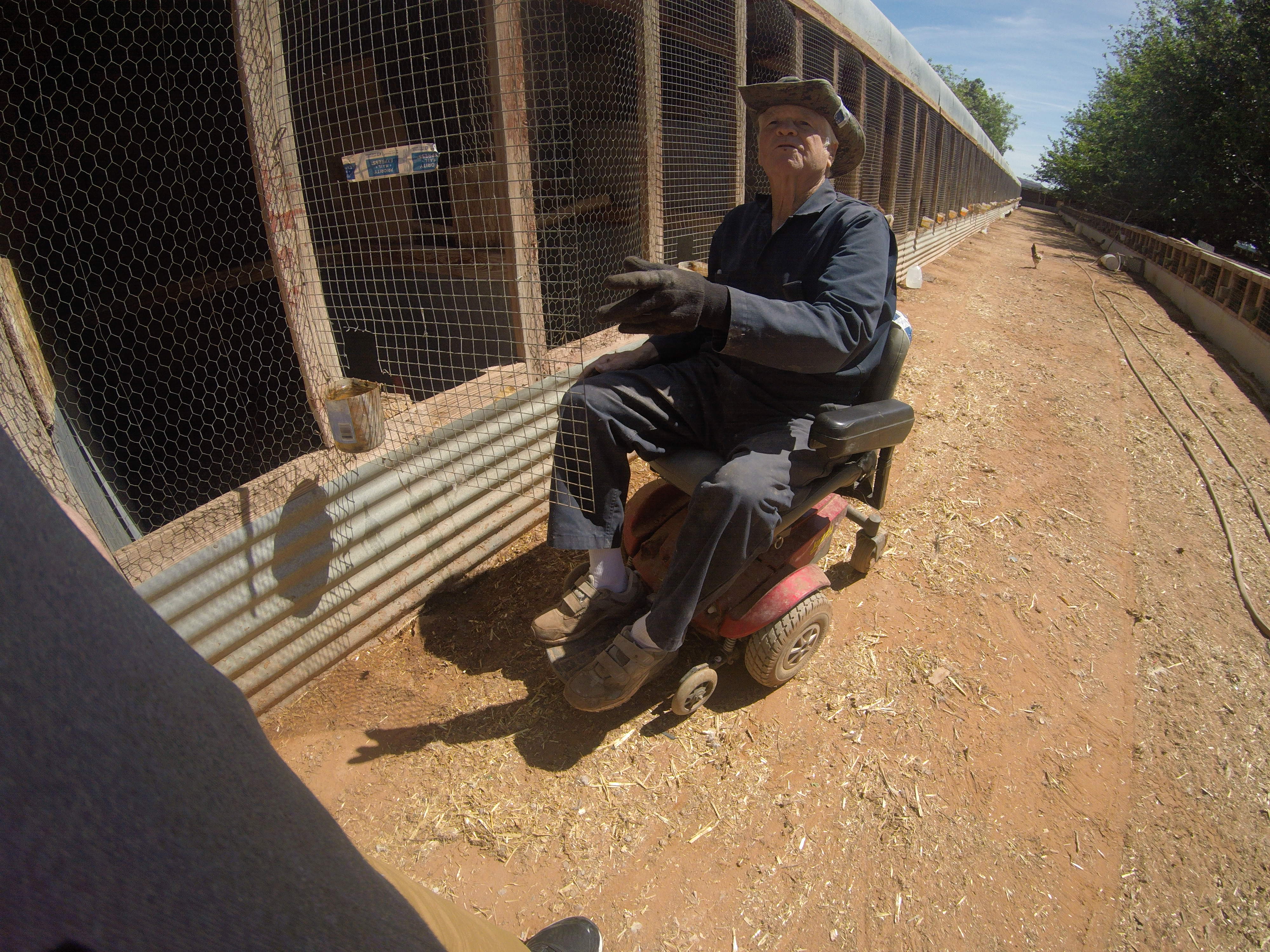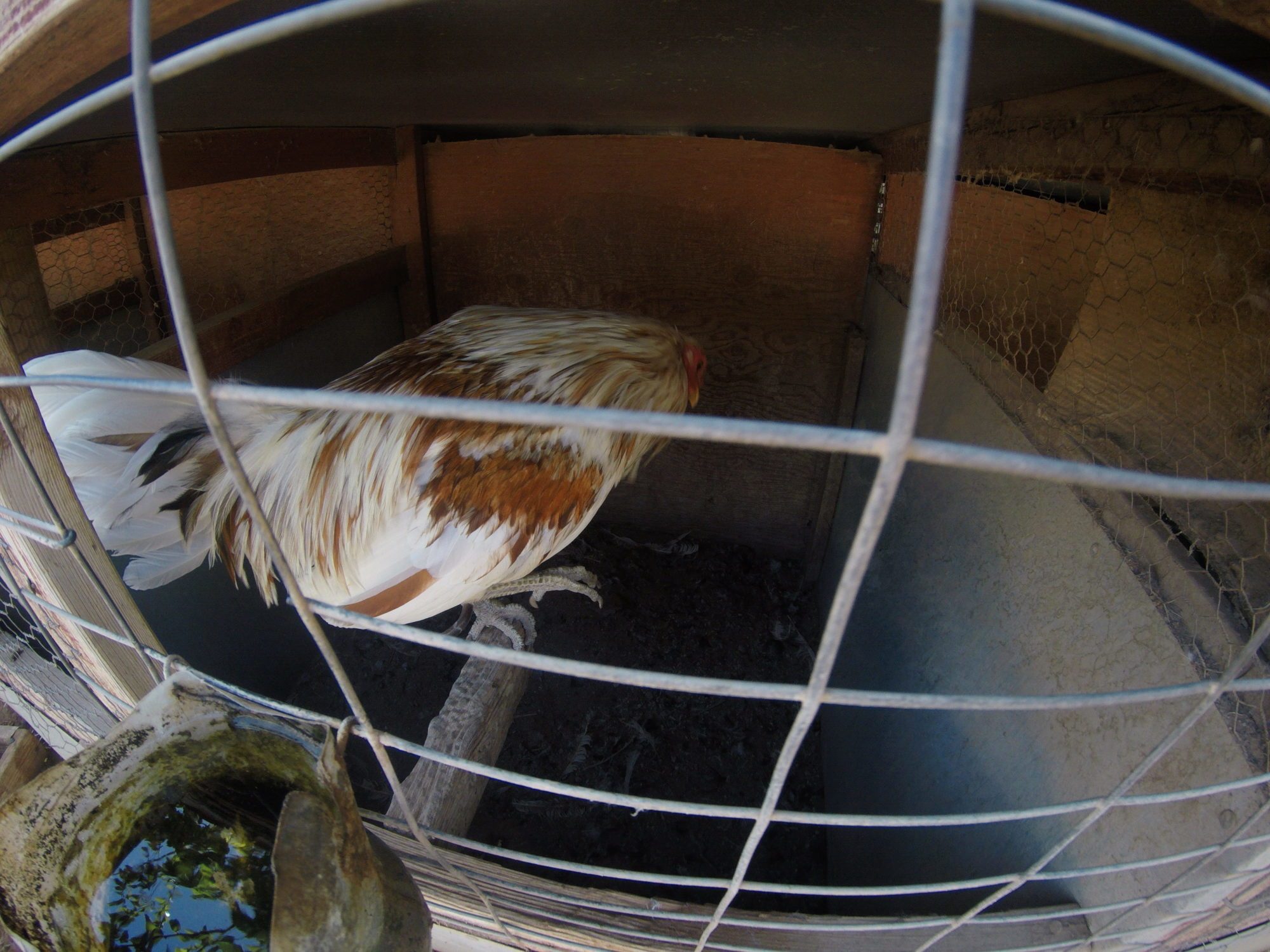 so the rooster of the spangled butchers that I am getting would be in the 4x4' single pen, not the pen in the bottom right but the next one up on the far left....by his shoulder this is the male out of the trio that I selected...bill will be picking out the hens for me.
