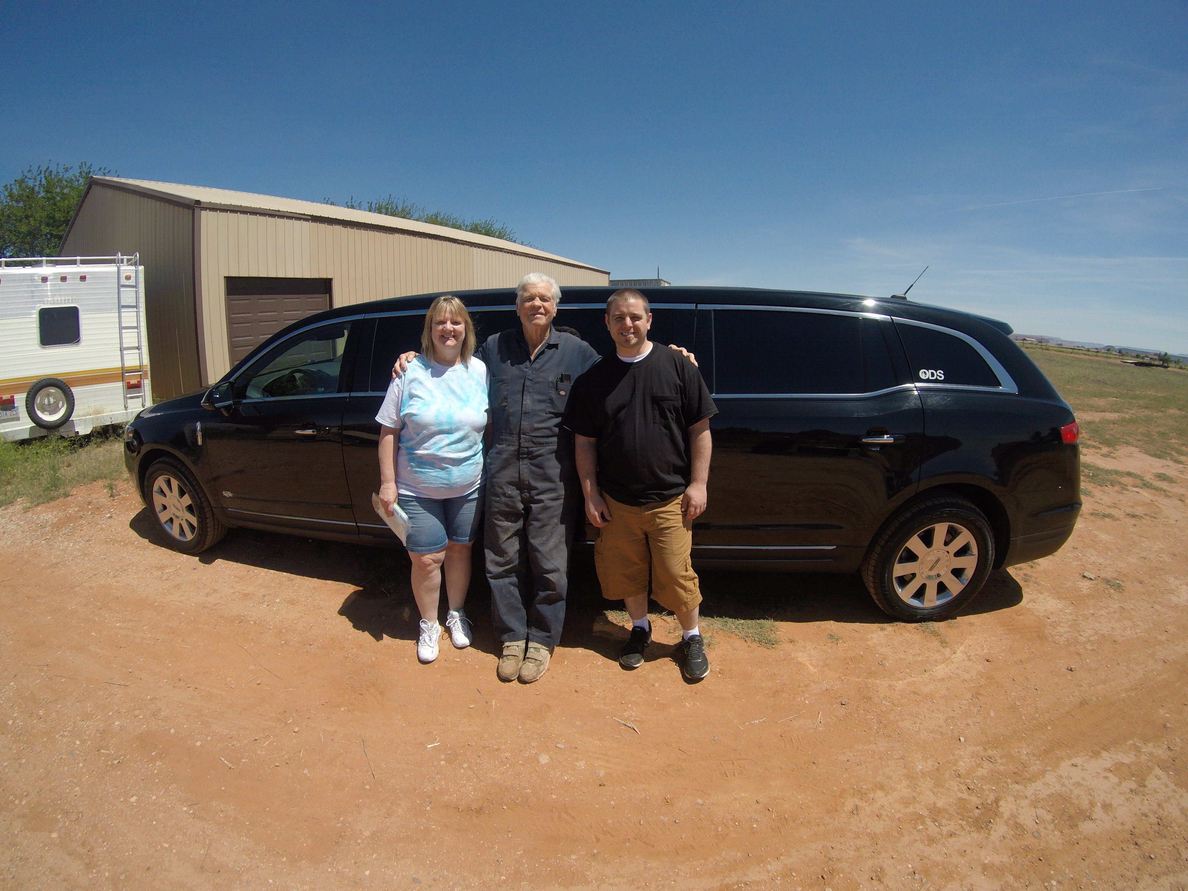 bill Roberts, mom and myself in his backyard