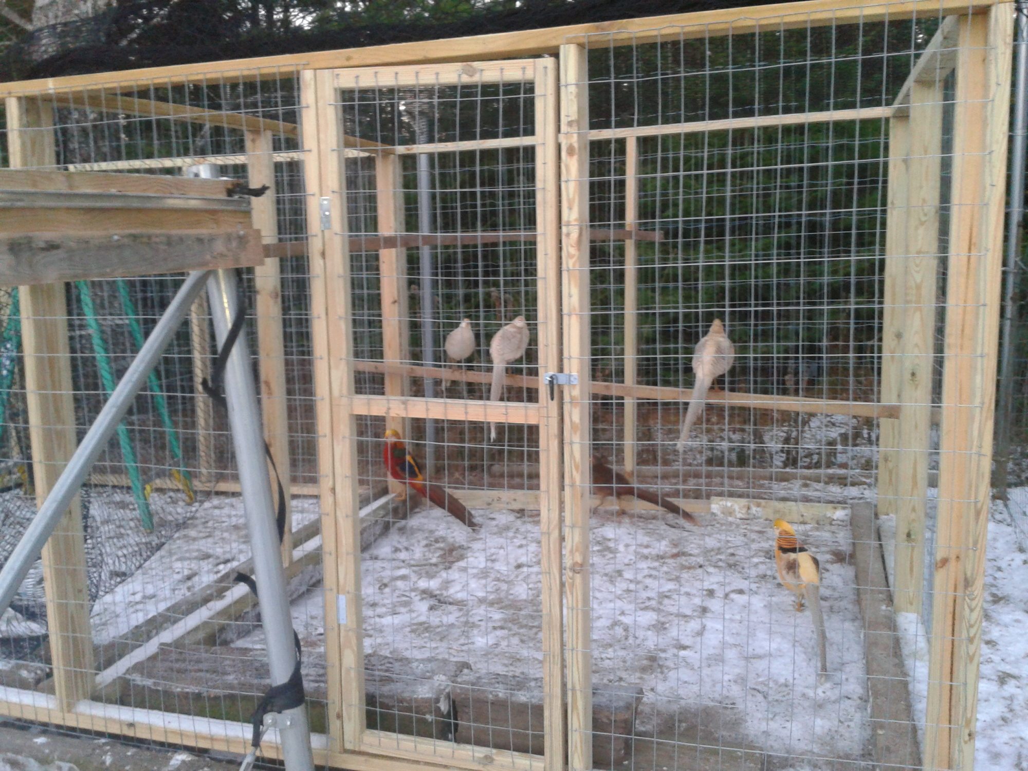 hello everyone...so the darkness hit...and now I must come inside to catch up on here...so this Is what happened today...cut the netting...put up netting on one coop... moved the six male pheasants that are not in my breeding program...and covered the bottom of the coop about 60 percent and then it got dark...here are some pics