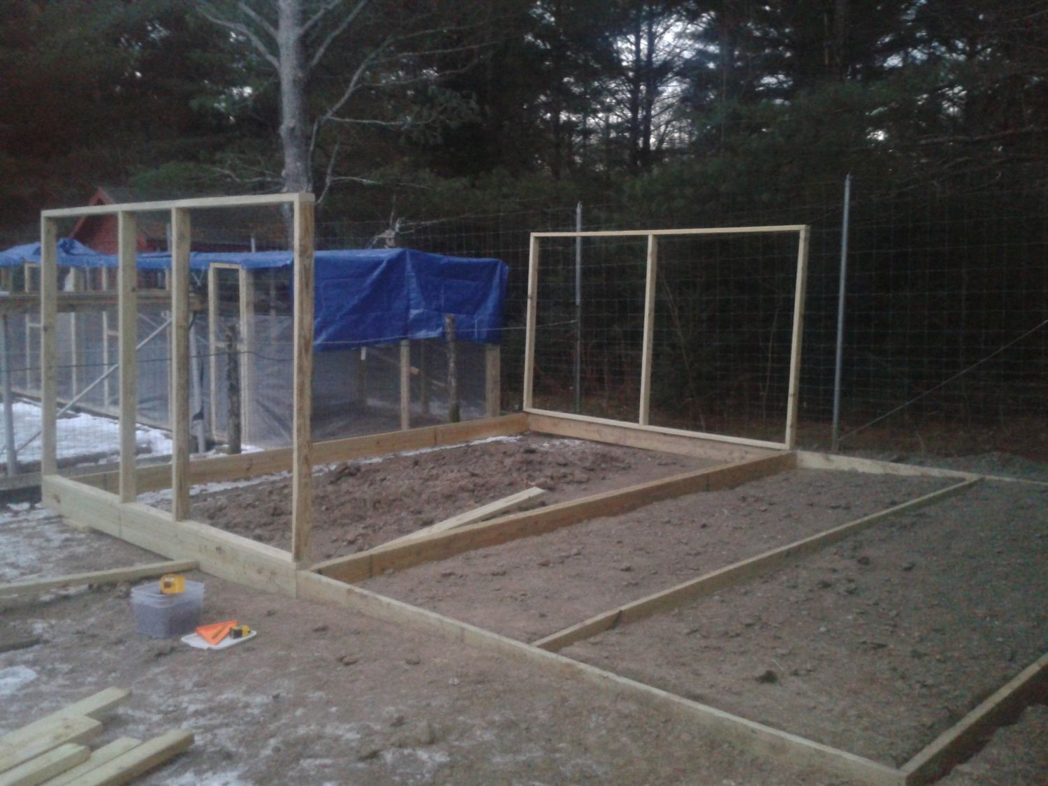 well just got done moving the wood by hand to the back...well off I go to work on the coops....man its cold its like 10 degrees and being on a hill with the high winds makes this job just get more fun...