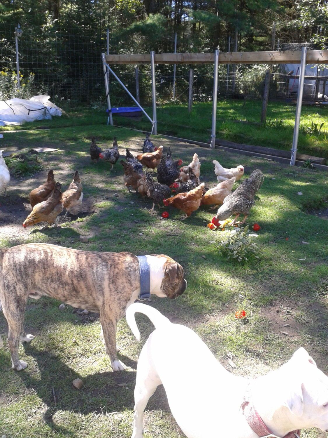 Gorgeous dogs!!! Ugh, guineas.. If we were closer I would give you a few guinea! I have about 30 here, and several of them someone generously "dumped" off. I had 1 pearl and 4 lavender. kept around 8 keets this fall, sold the rest! One morning, I had a flock running around of the dusty chocolate color, and a neighbor said they were in the road and by the creek. Since we have around 200 assorted birds here, they just kinda settled in