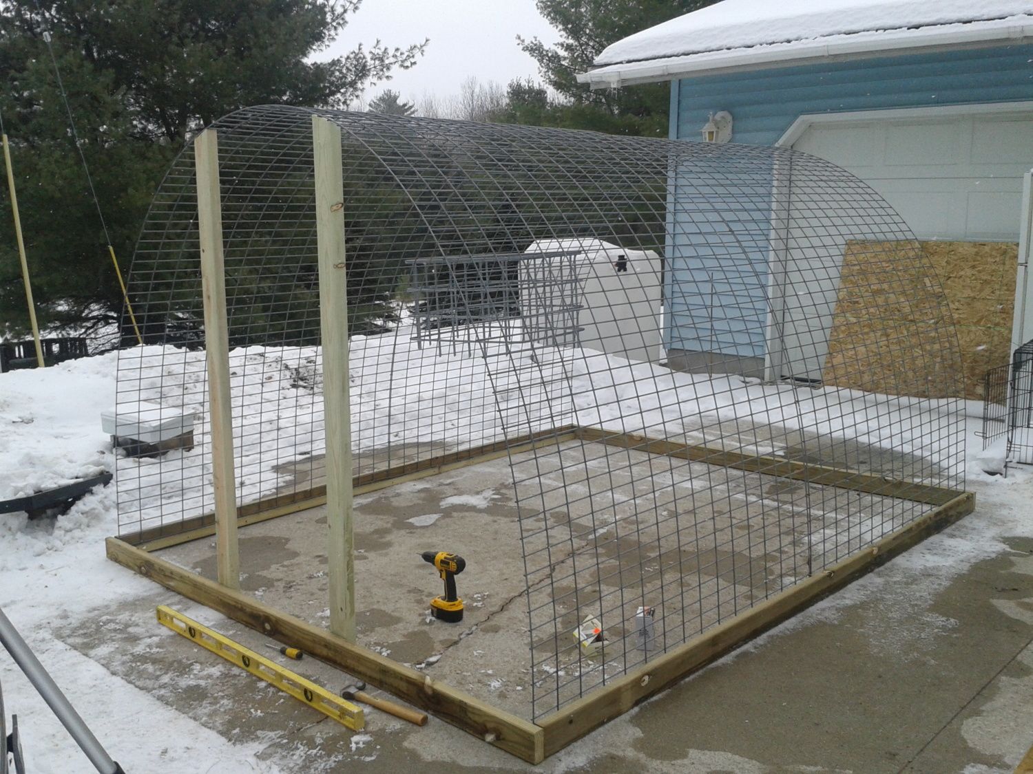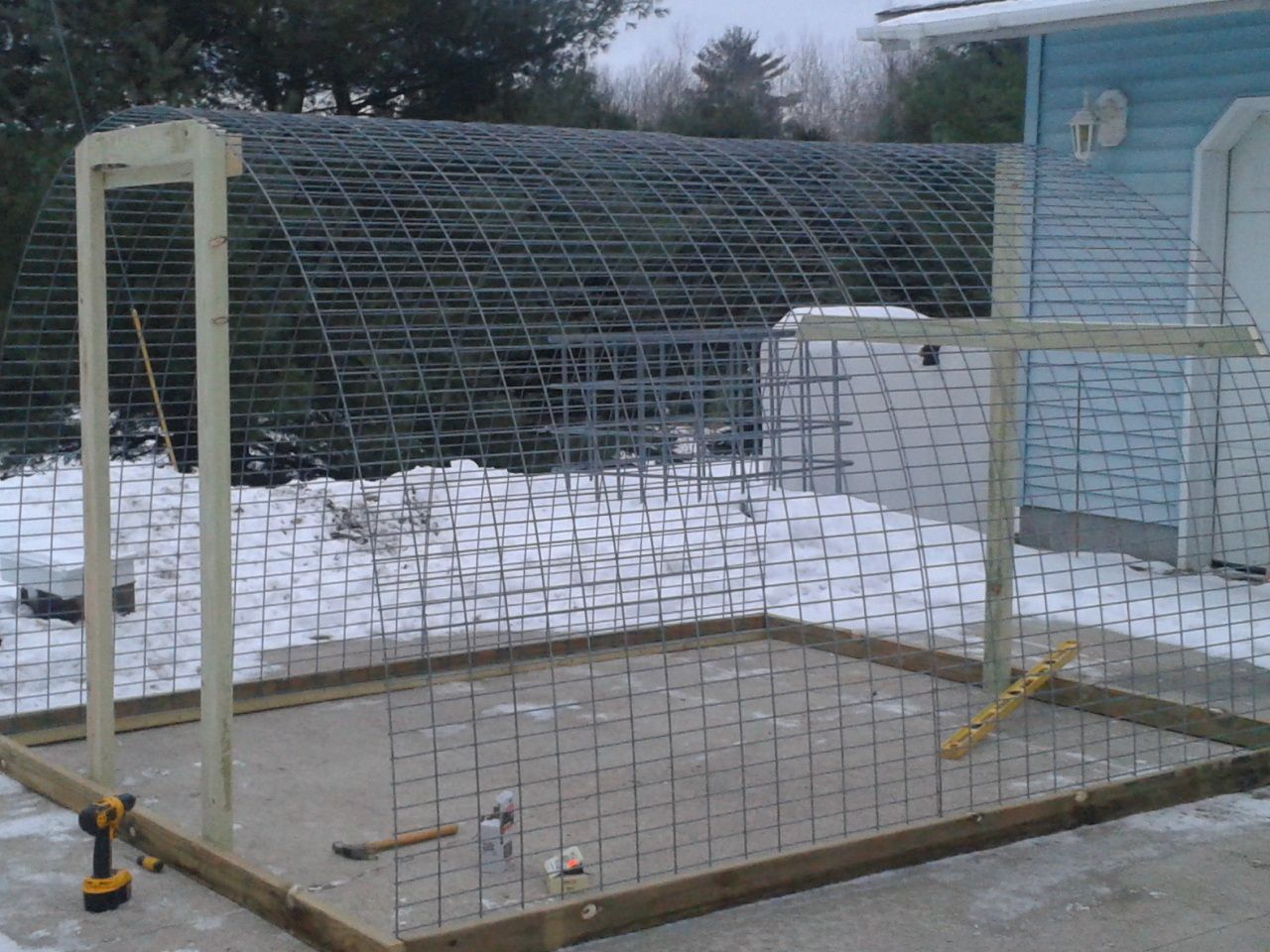I am still trying to figure out how to roof the new coop without having to climb a ladder.... I am tired of Tarps.