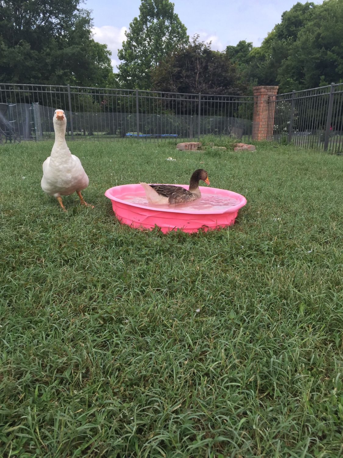The terrible two hanging out by their pool.