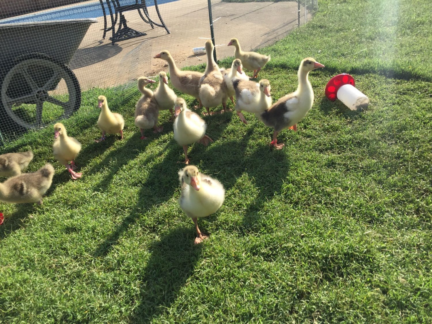 So far I have seventeen geese, I think we are past the age where they will just drop dead so I'm set on this number. Ive got the Terrible Two who are 1.5 years old, Apple who is 18 weeks old, the Nasty Nine who are four weeks old and the Fiesty Five who are almost three weeks old!