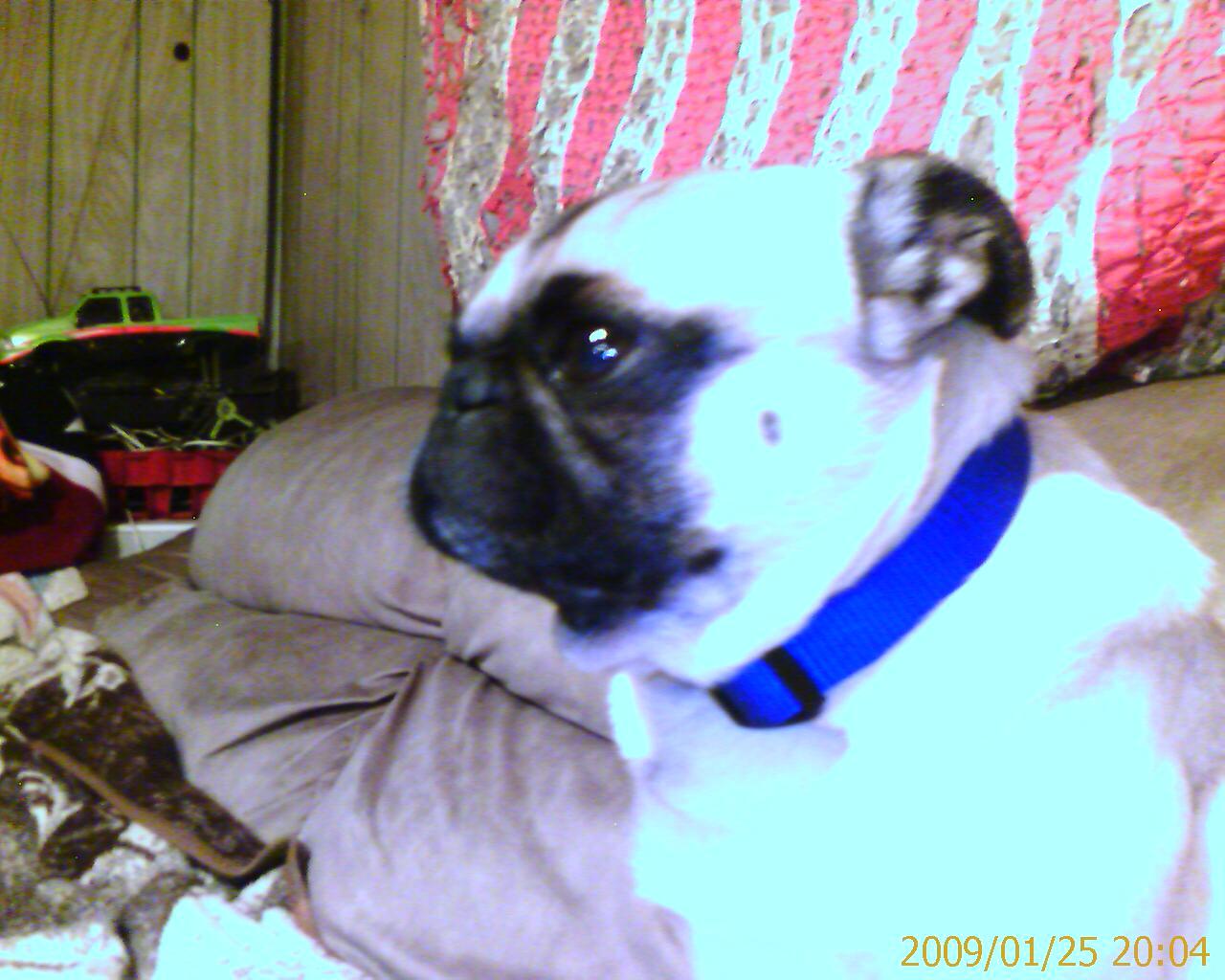 All the babies are beautiful. I just wanted to share a pic of Cass our American bulldog. He is "guarding" the front door. He is 18 months old now.
