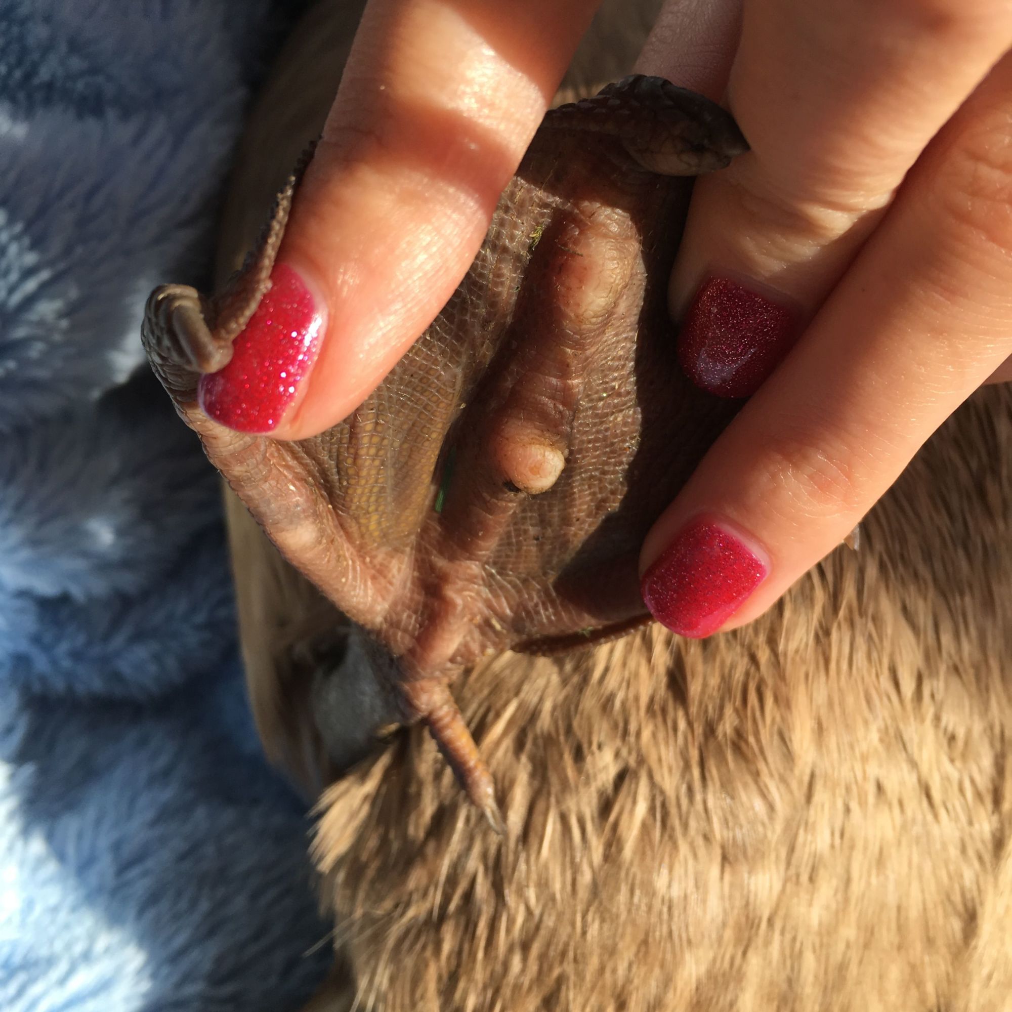 Looks a lot like what my duck had. Is the foot warm? We had good results with our treatment.....Soak foot in epison salt then cover in hydrogen peroxide let dry spray with vetericyn and cover with antibiotic ointment