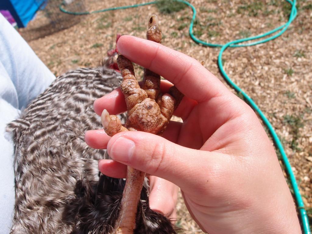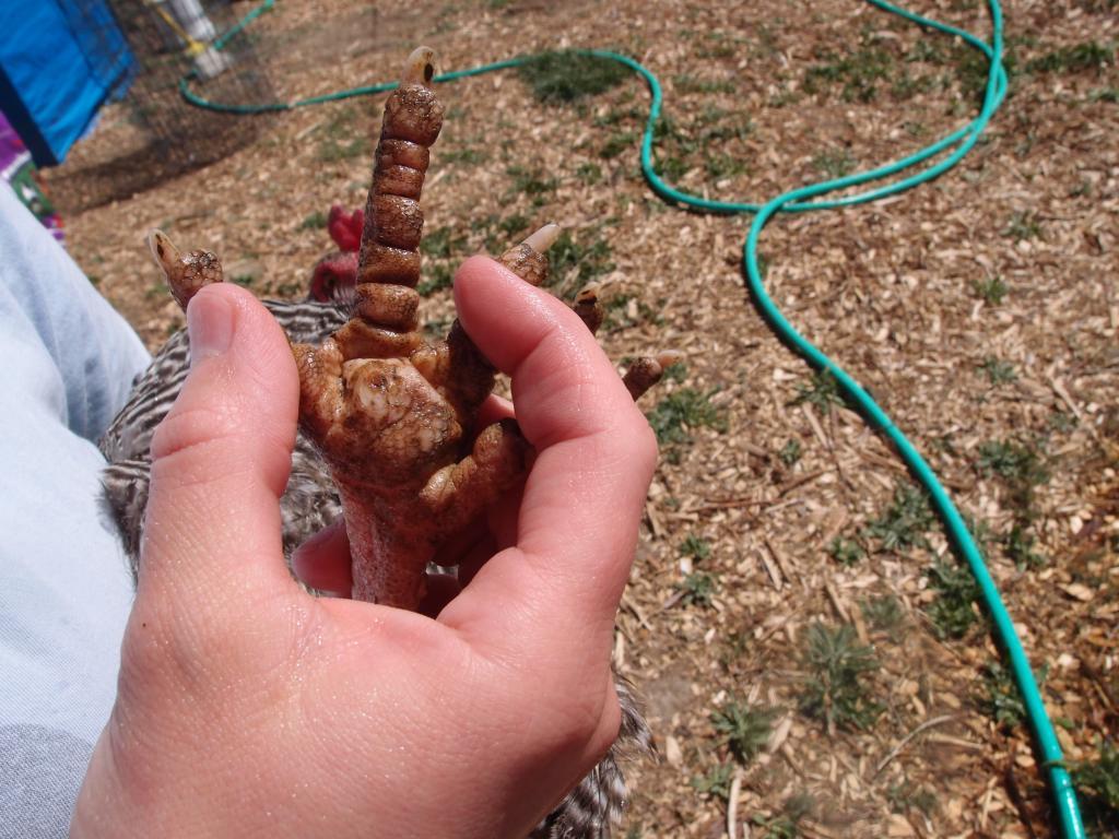 I think one of my girls has bumblefoot. I've never seen it in person, so I'll share some pictures below just to be sure (tried washing her feet with the hose but that didn't work too great).
