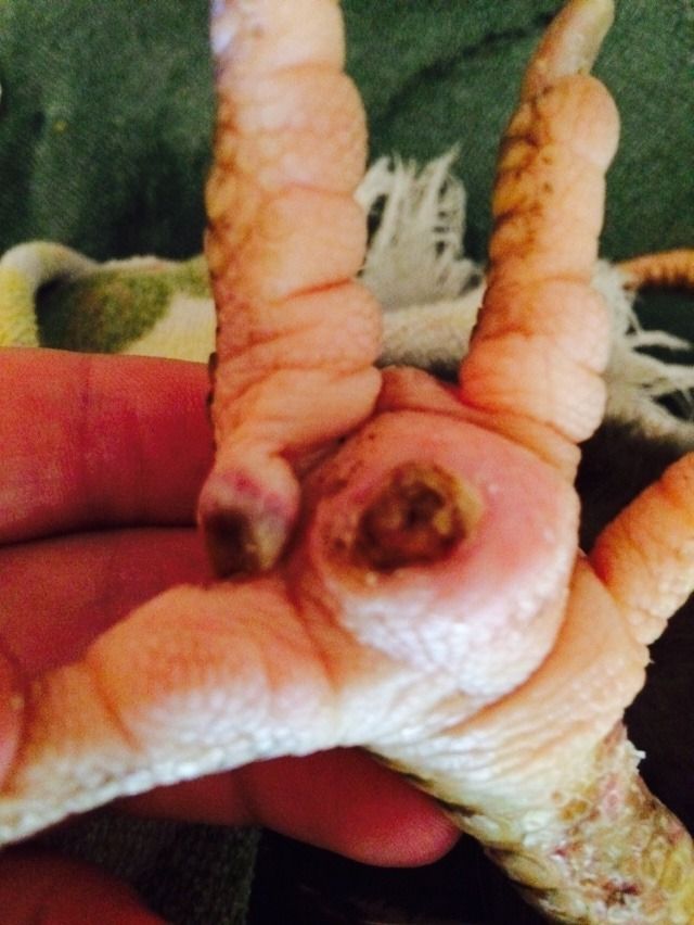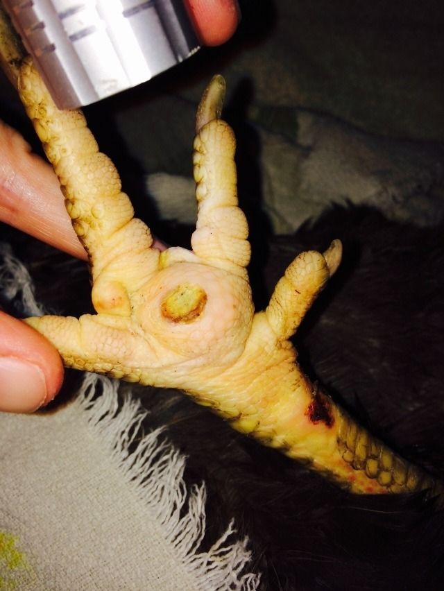 She's in much better spirits too. She's spending full days outside with the flock, and then I bring her in as the rest of them are roosting to clean the foot and change the bandages, then put her in her hospital crate overnight. The foot is cool to the touch, skin is normal color (not flushed), and she's not limping or laying down excessively. I'd still like to see the ankle abrasions fully healed before letting her roost overnight, and I think we've still got some time for that to be fully healed. But overall, I feel good about her progress. I did not end up taking her back to the vet since the hole seems to be filling in with healthy skin, but it's always an option if needed.