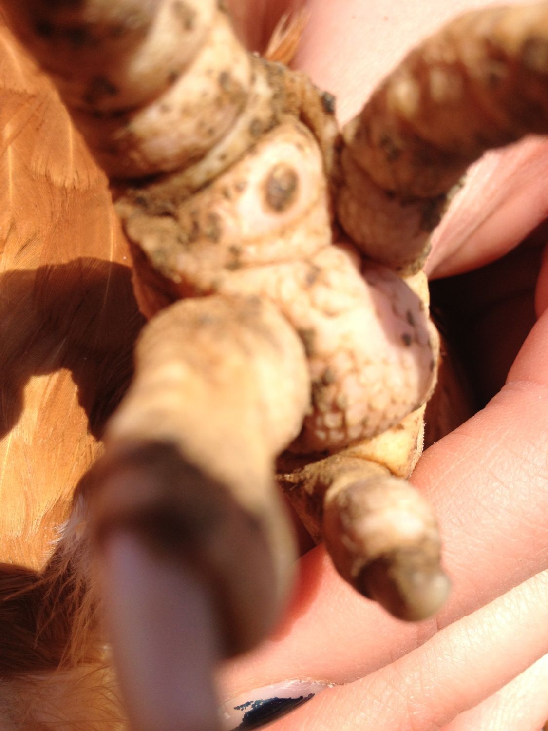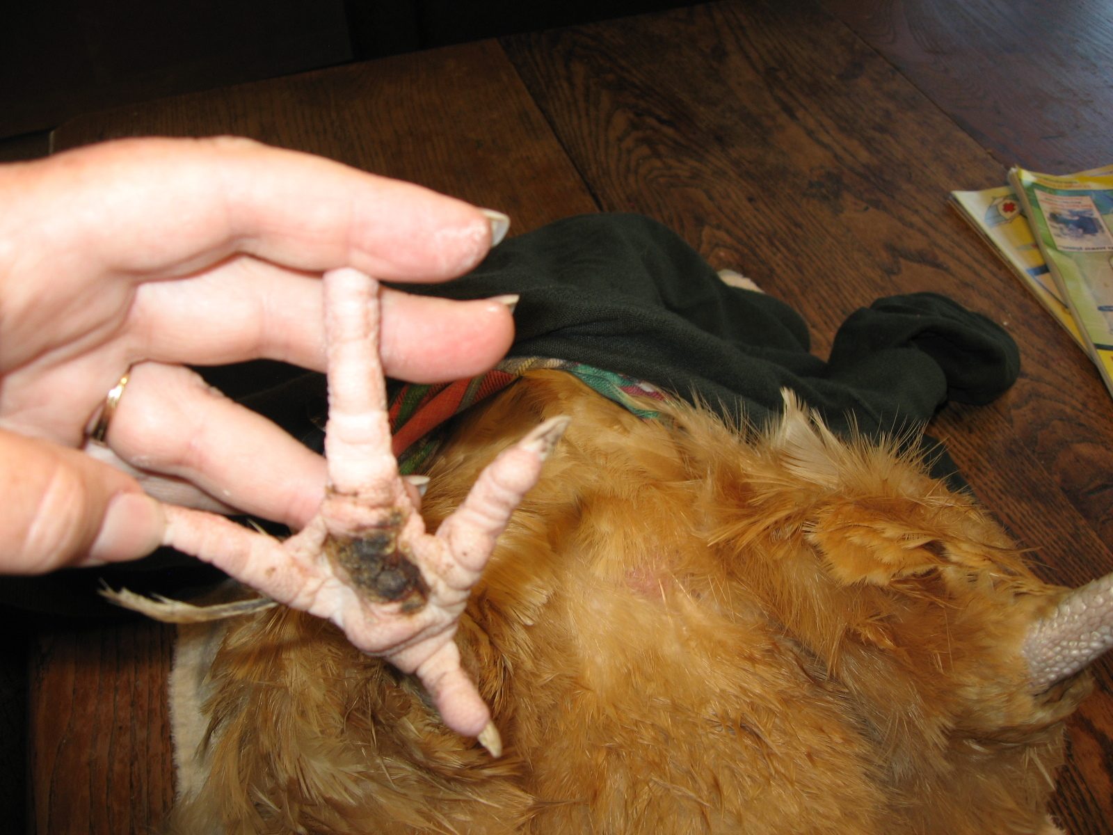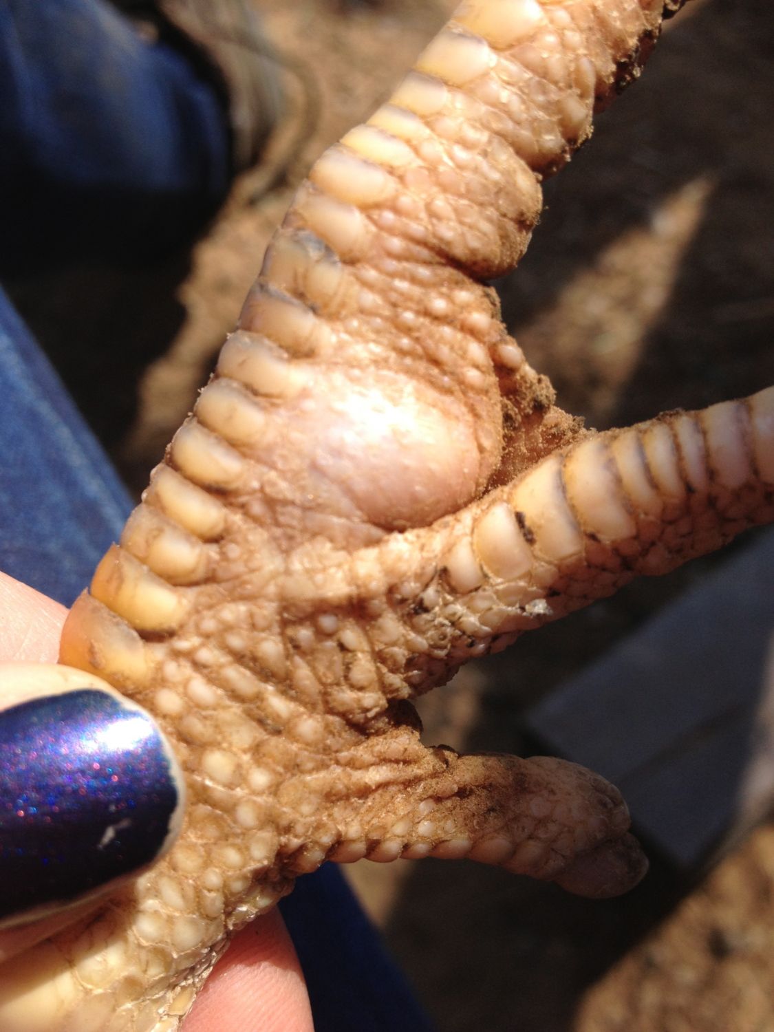 Oh, it hurt alright. Chickens just do not express pain in the way we do or in the way we are accustomed to seeing other animals react. It's a survival instinct so as not to draw attention to themselves from predators.Holy cow guys, I pulled out a bumble today that I really should have photographed. It all came out in one piece, huge at the bottom and more narrow at top, like a tooth. It left a hole that I could see through from the top of my girl's foot. Ibdont know how I am ever going to touch food again, I can't believe I didn't hurl. Thanks for the wisdom, I couldn't have done it without this thread.