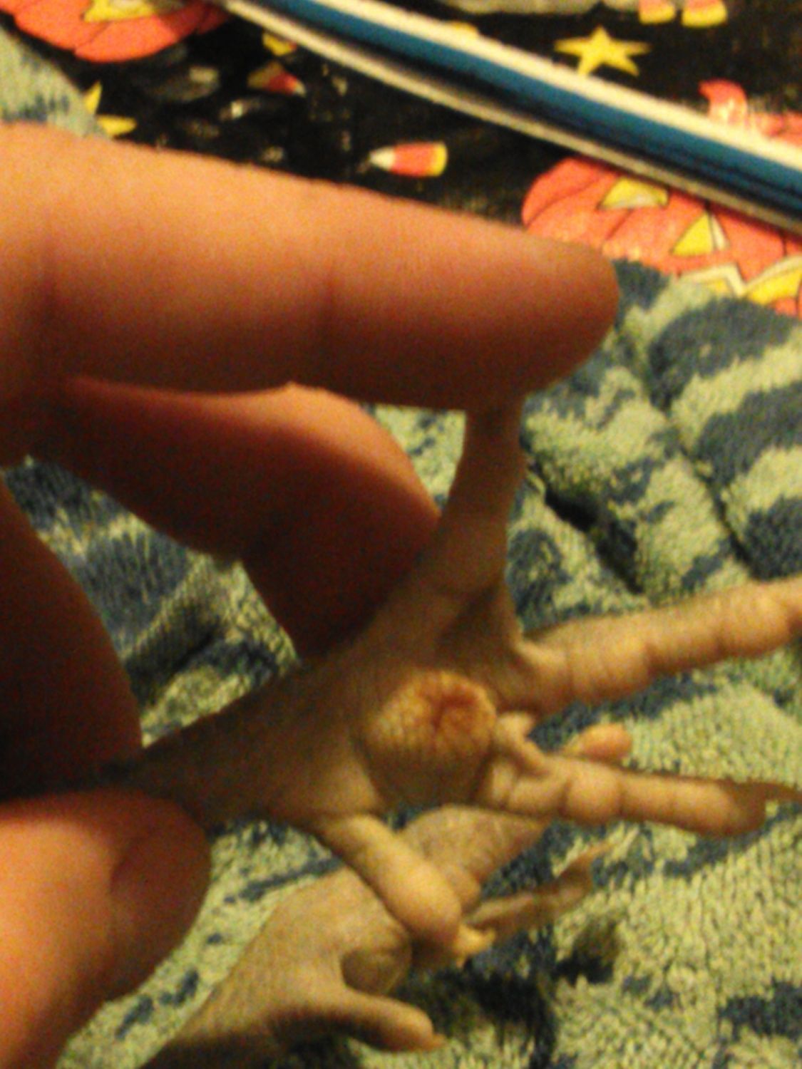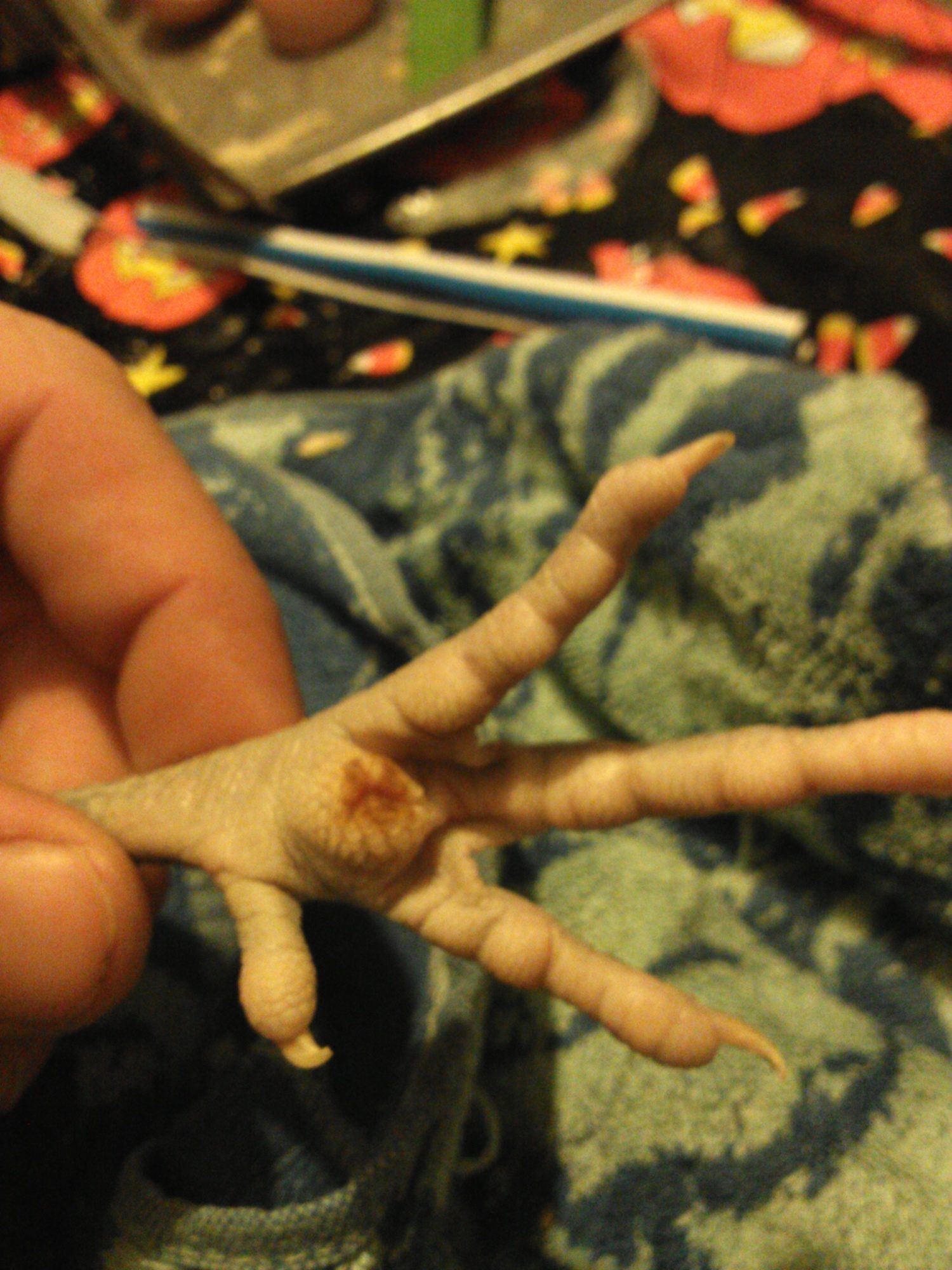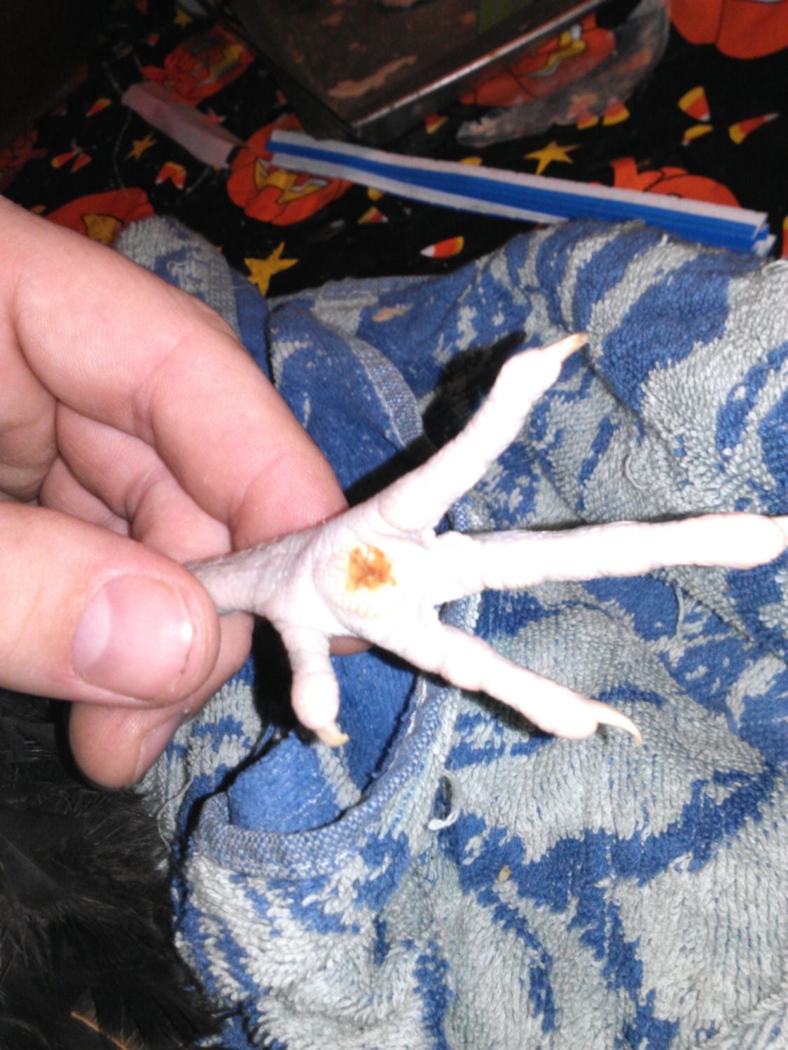I too noticed the bumblefoot when I noticed one of my hens had swelling between her toes a couple days ago. So I did some research and was able to perform the surgery tonight. Her one foot was horrible. The infection was on both the upper and underside of her foot. I think I got all the infection out. Unfortunately her other foot had bumblefoot as well only it wasn't as bad. So she now has two wrapped up feet. She still wanted to perch on the roost tonight though even though I tried putting her inside the house I keep the babies in. So since everyone was sleeping and easy to catch, I decided to check the rest of my girls. Turns out two more had bumble foot.