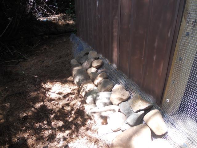 I layed 18" of hardware wire flat, all around the outside & covered it with 3" of DG (decomposed granite).