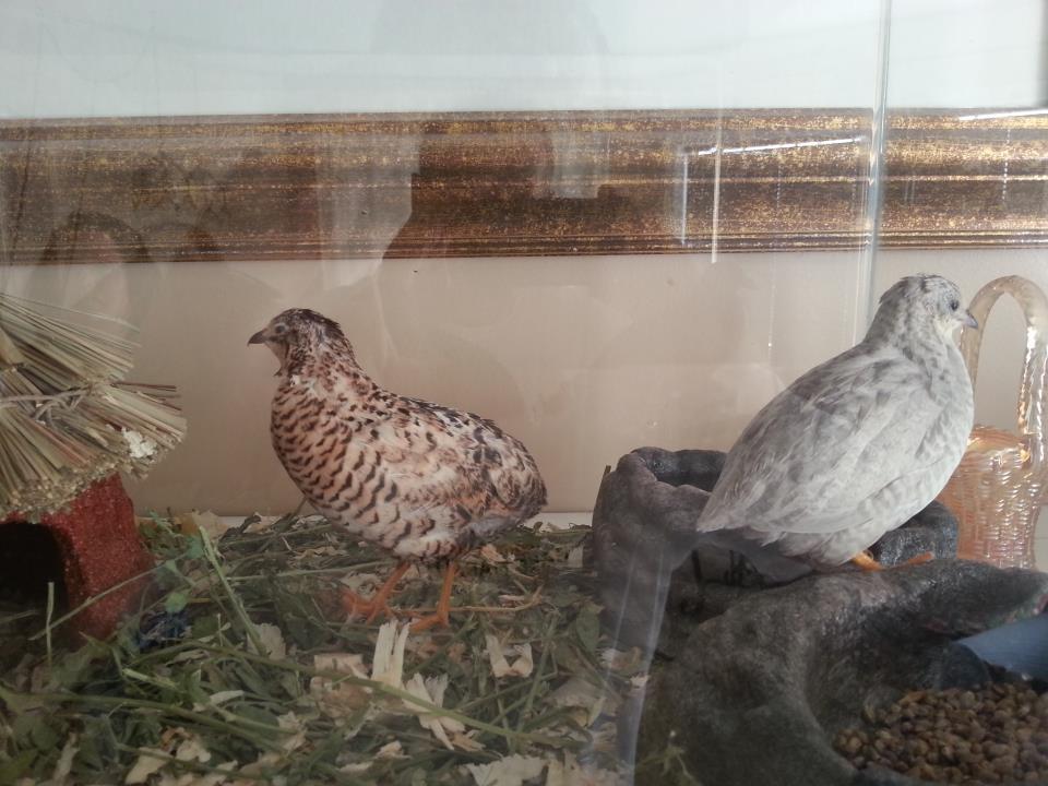 I bought two Buttons six weeks ago and haven't seen any eggs yet. One is silver and one brown and both were fully feathered. I don't know when they hatched. They are in a large aquarium in our living room. Its warm in there, but I just added a LED light shining to one side of the glass in case the fact that the curtains are drawn interferes with hours of brightness. They have a hut to hide in. I feed duck crumbles, hemp seed, alfalfa hay and sometimes meal worms. Is there anything else I should do to get eggs? Do they need a quiet room? I haven't been able to find a boy yet.
