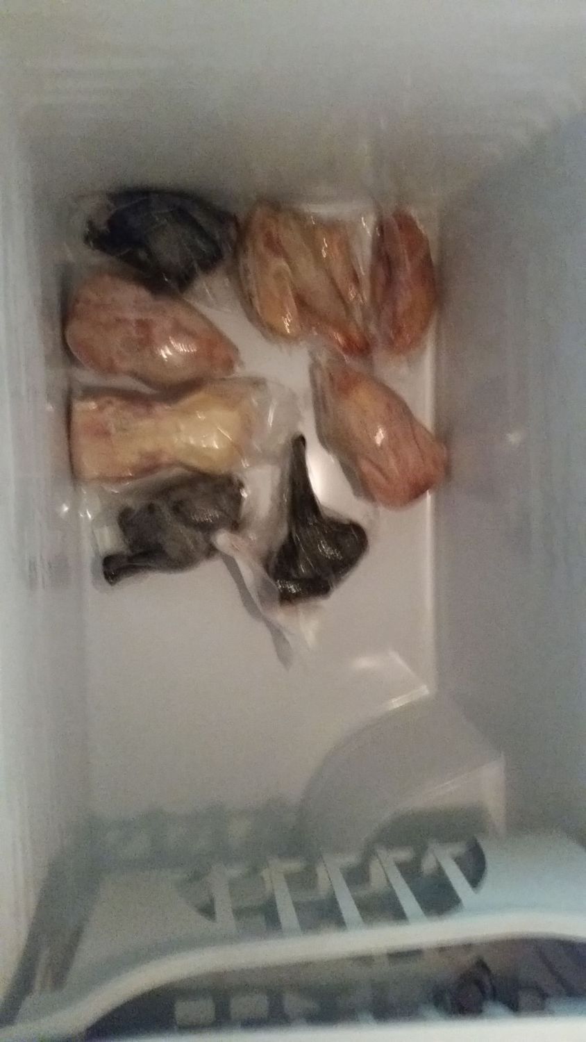 We just stuck some things from our kitchen freezer in, so this is what it looks like right now. Note that these are dual purpose cockerels, silkies, and a runner duck, not big fat broilers.
