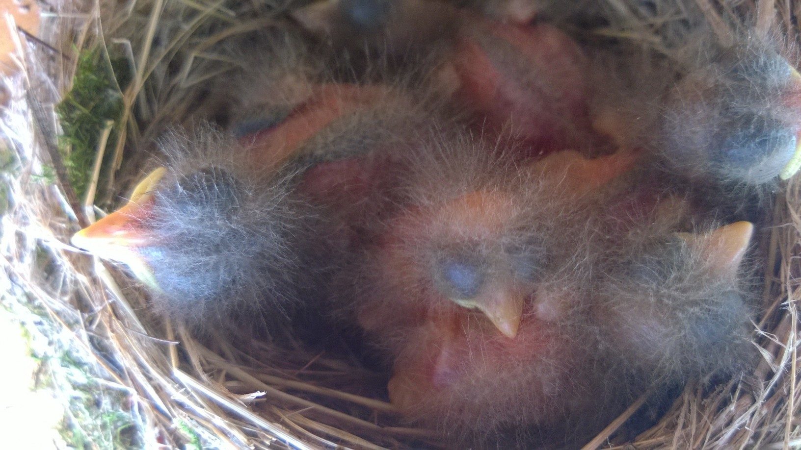 I think the baby birds are sort of cute. I'm a big believer in the whole circle of life thing, but I don't want the nest where I'm going to be disturbing it all the time. Hopefully once we take the nest down, mom and dad will find some where else to have their family!
