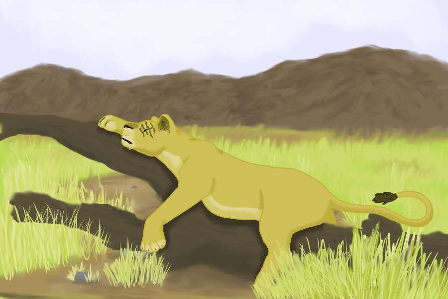 Takinu sleeping on a log done on the computer!