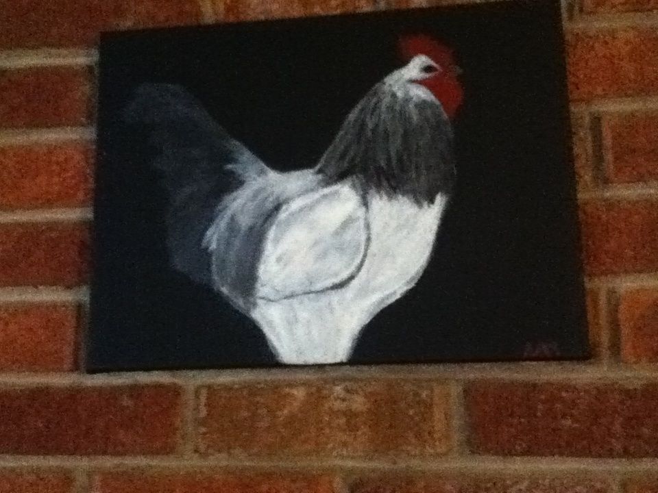 A painting of my rooster, Rudy, from this year:
