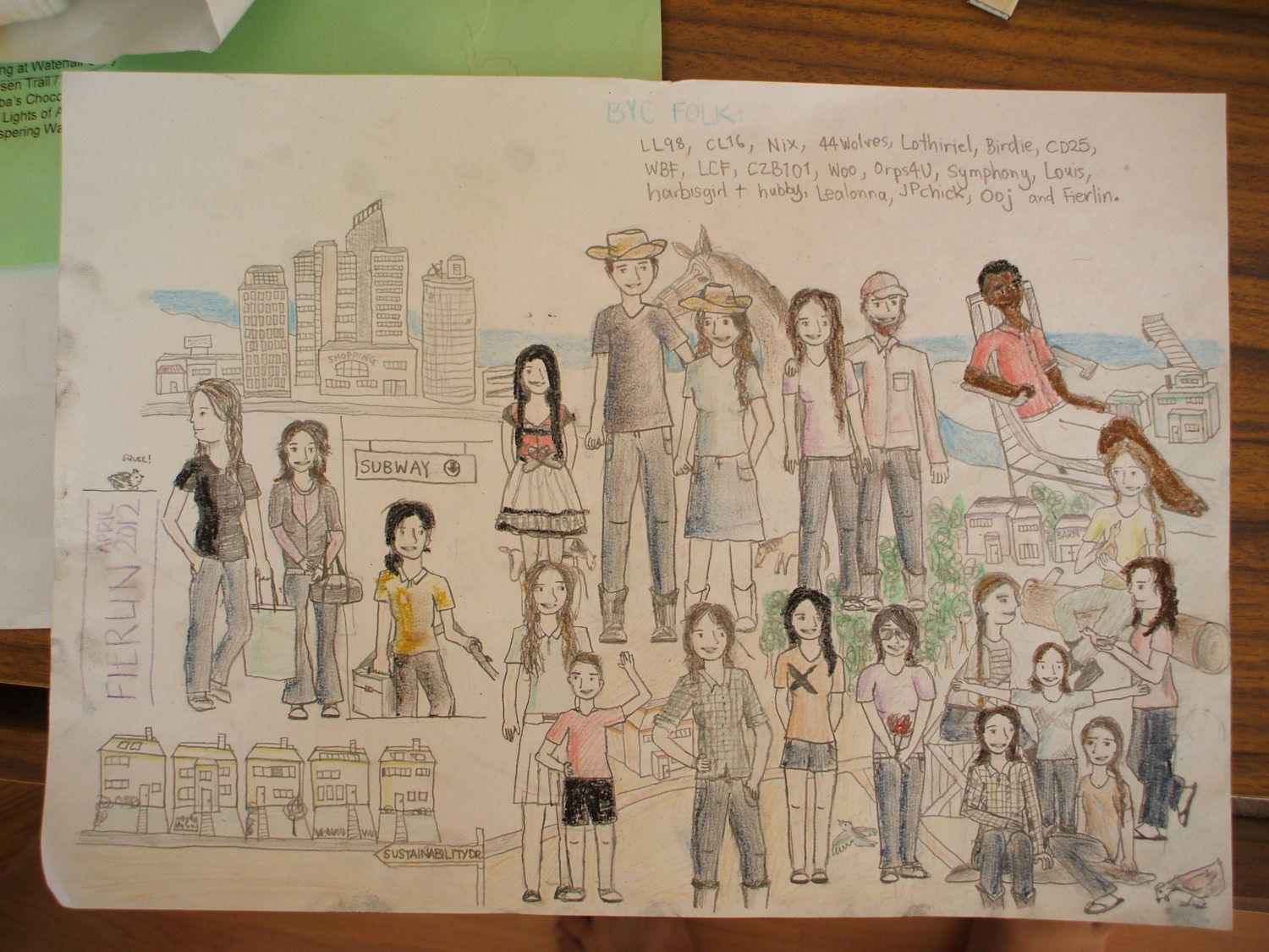 Wow! that is one talented artist! I am not part of this but I thought I would put in my two sence, maybe you could make a second copy of the picture with the people labeled so that people could find themselves. Just a thought!