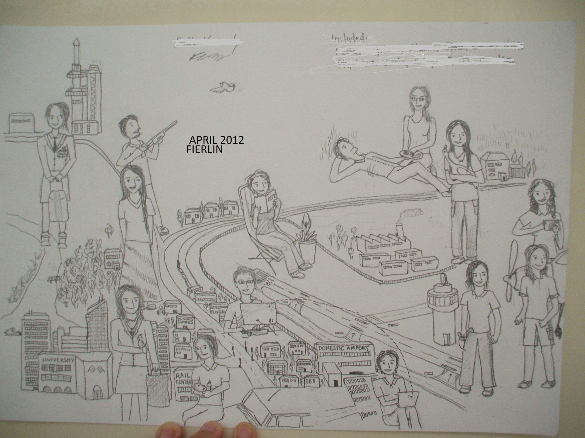 Hairstyle: Just above elbows, very wavy, but not curly, grown out chin length fringe (bangs), slight layering starting at shoulders. Dark red-brown.