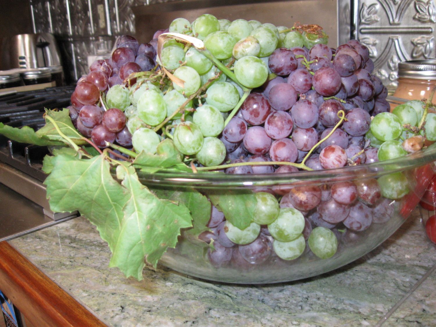 The pears we'll wrap for ripening. One of these lugs of apples got juiced and the results turned into 15 half-pints of mulled cider jelly; the other will become applesauce tomorrow (still lots on the tree). The table grapes....well, snacking.