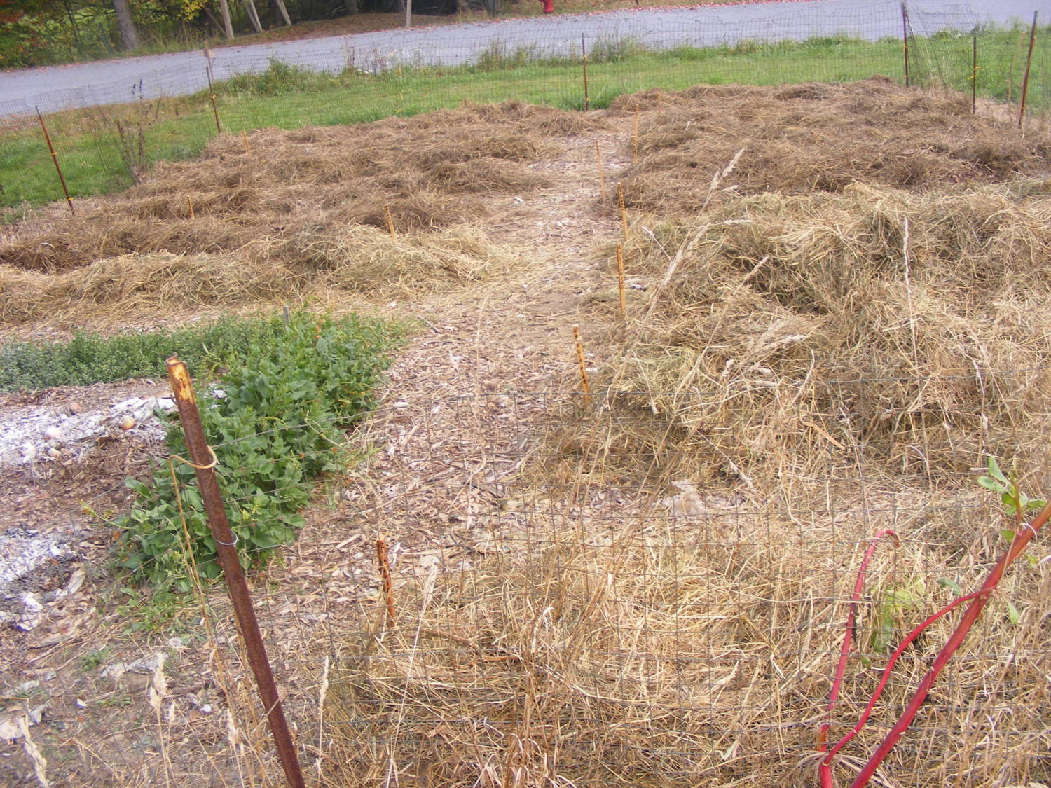 For the garlic they recommend thatching with straw after it starts to sprout. I think the thatching of all the plants may not be a bad idea especially after the assault I gave all of them during the thinning and separating operation. I decided to throw out the holly hocks. Too little time in bloom and frankly, ugly stalks post bloom have made me rethink them. I was glad for the space as that's where the garlic cloves went.