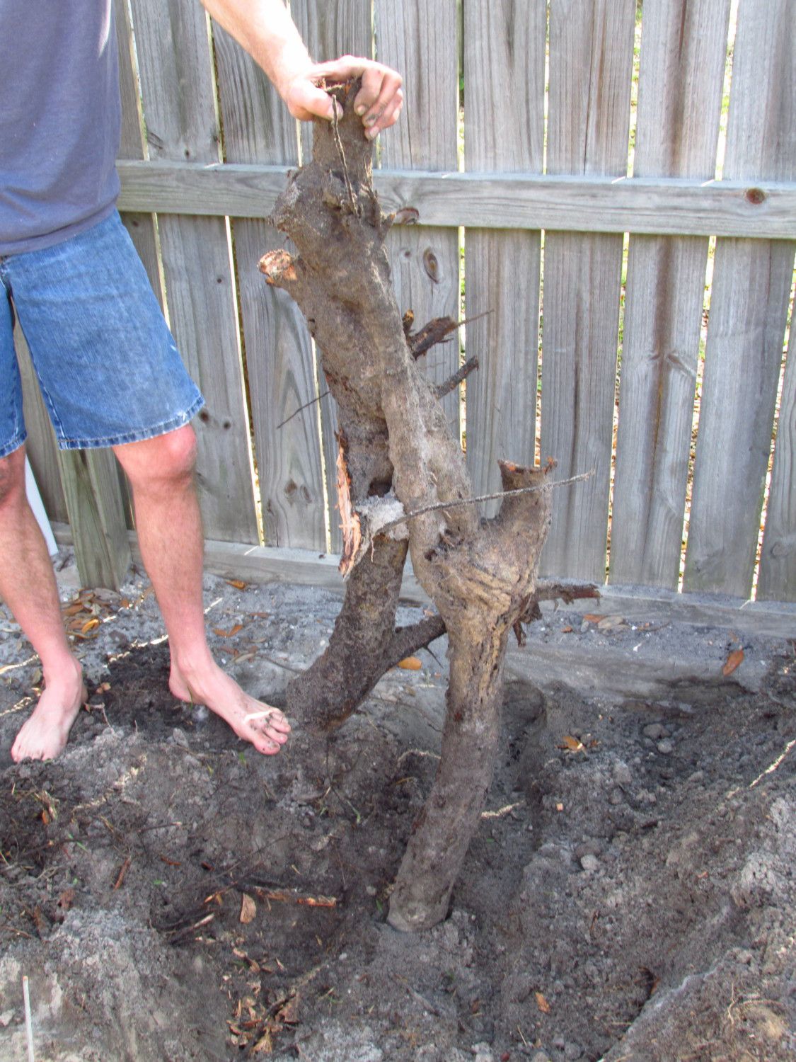 We just planted six blueberry bushes! And to do that we had to get rid of all of the tree-roots where were planting. (that took a really long time) The chickens kept getting in our way so I had to restrain them. One chicken in my right arm, one chicken in my left arm. Here's a pic of a really big root that my dad pulled up.