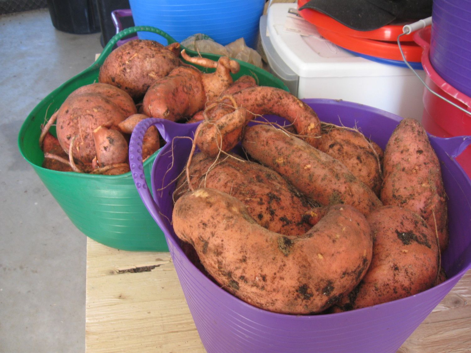 I am growing sweet potatoes. We didn't plant them until early July. I don't know how much I will get from them. And the fact my goats ate ask the vegetation on the to off three times, I am a little worried. I am letting them grow for as long as they can. I just hope I get something from them. But with the first frost right around the corner, we will see.