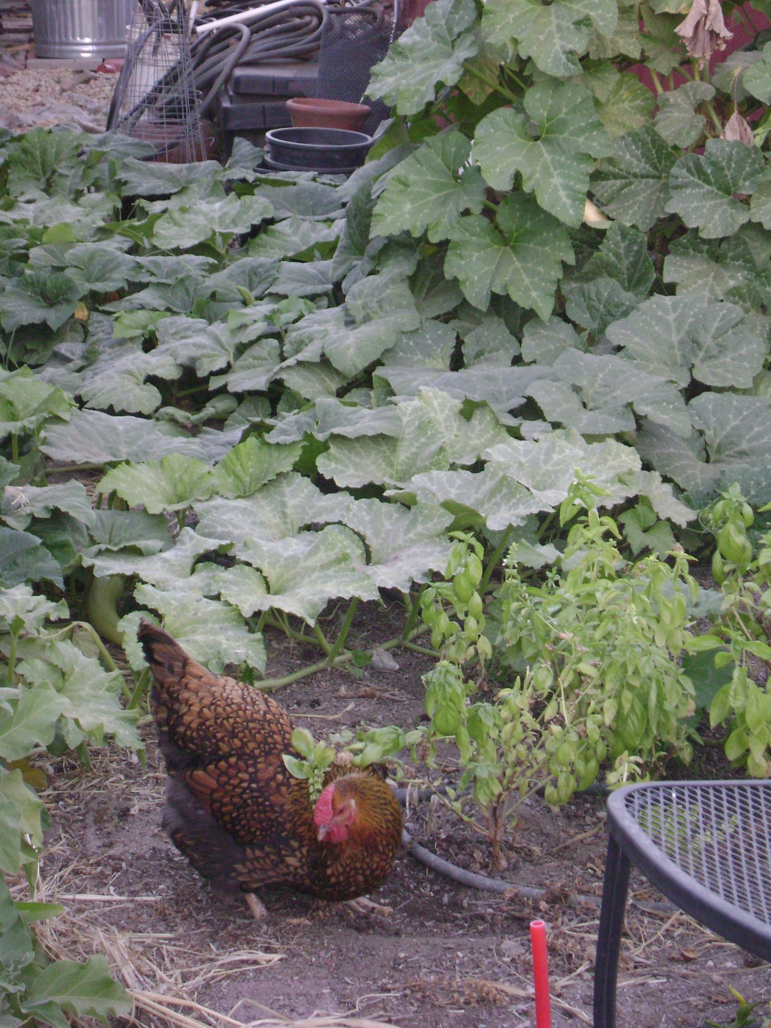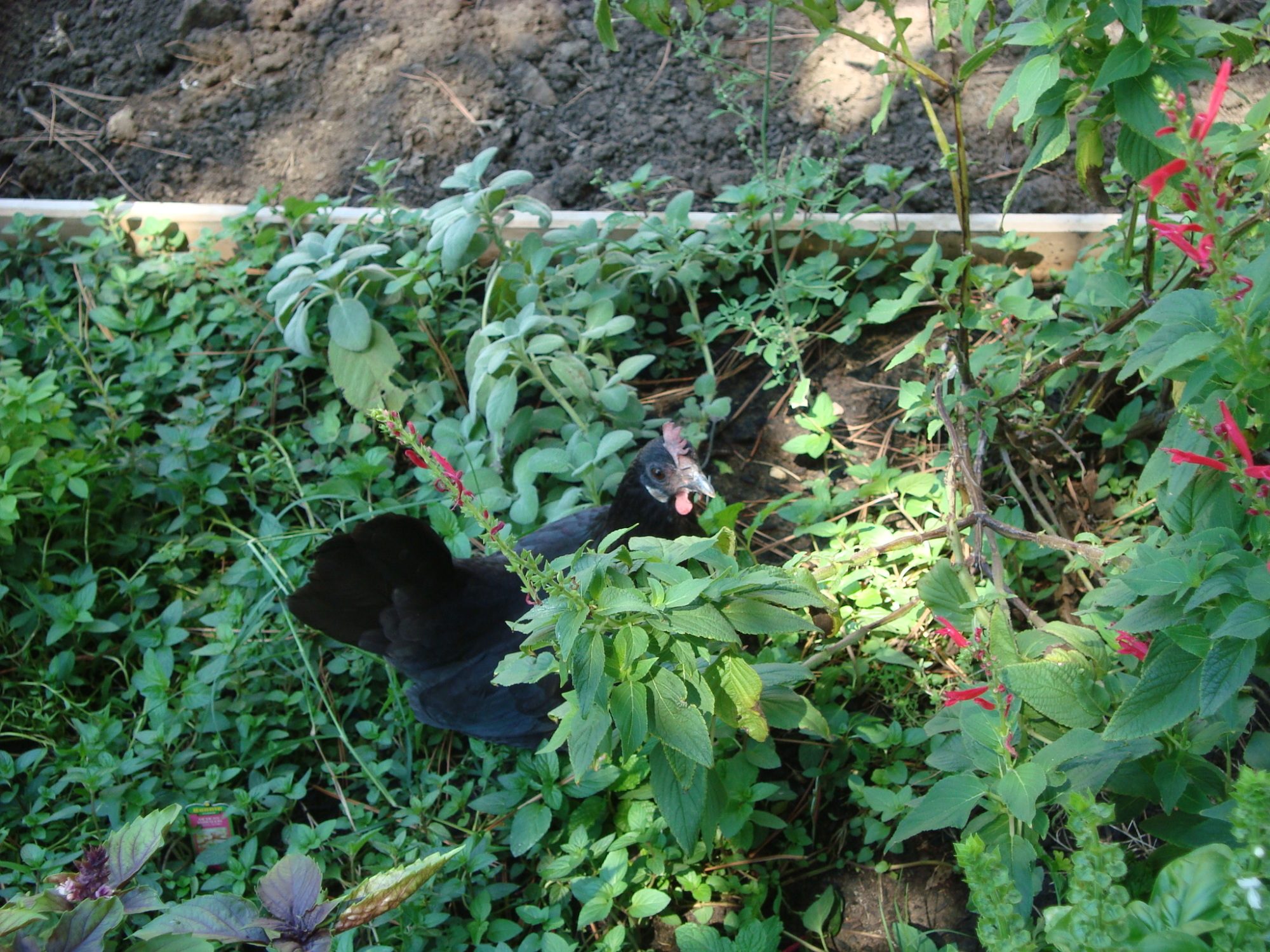 We are transitioning from summer to winter in the garden! The gals are tilling up the soil and clearing any lingering grubs. The herbs are still doing wonderfully well (and I have a little OEGB that loves to scratch around and perch a while in them)!